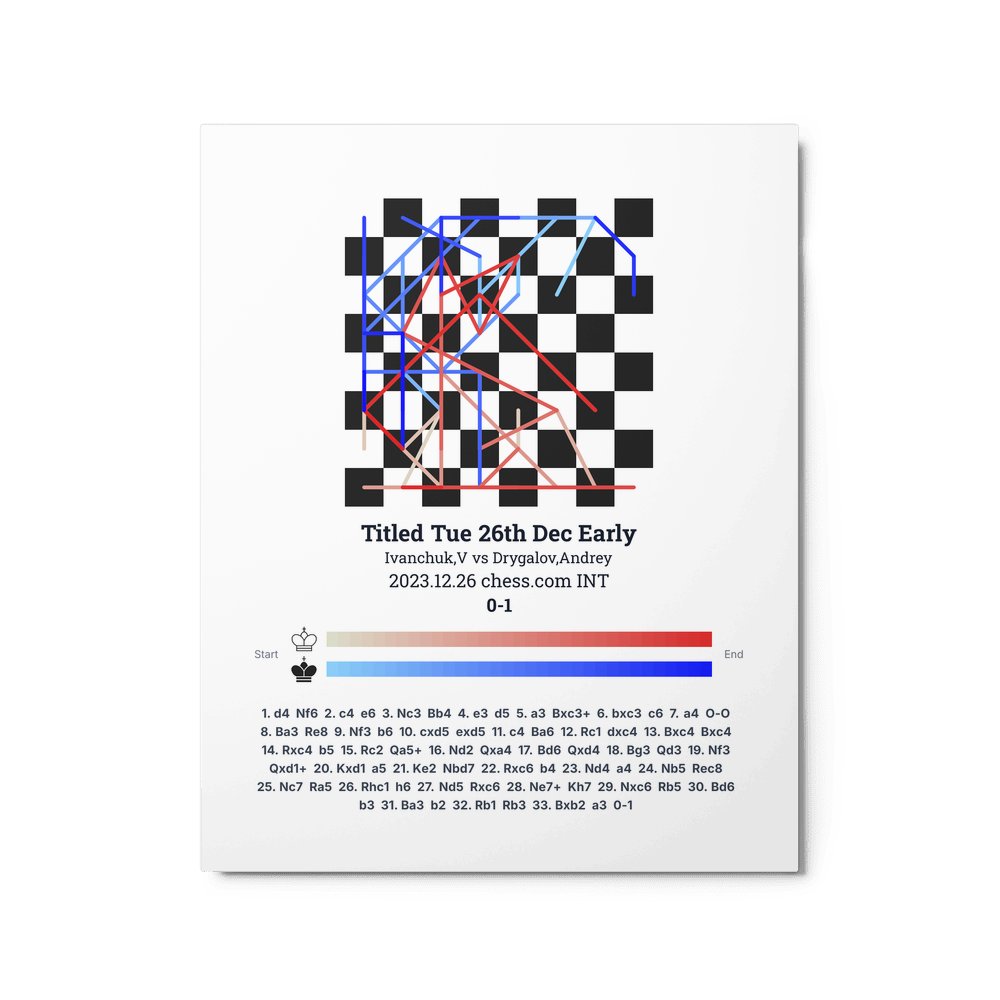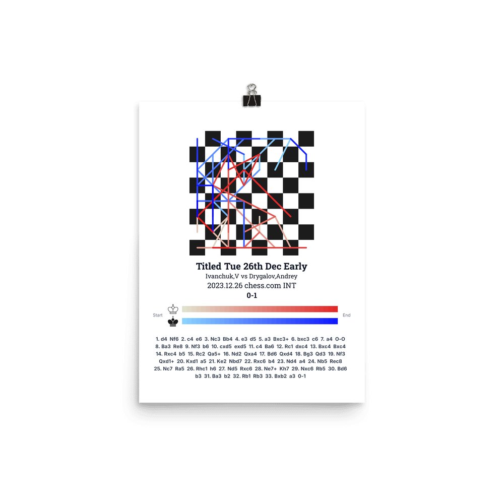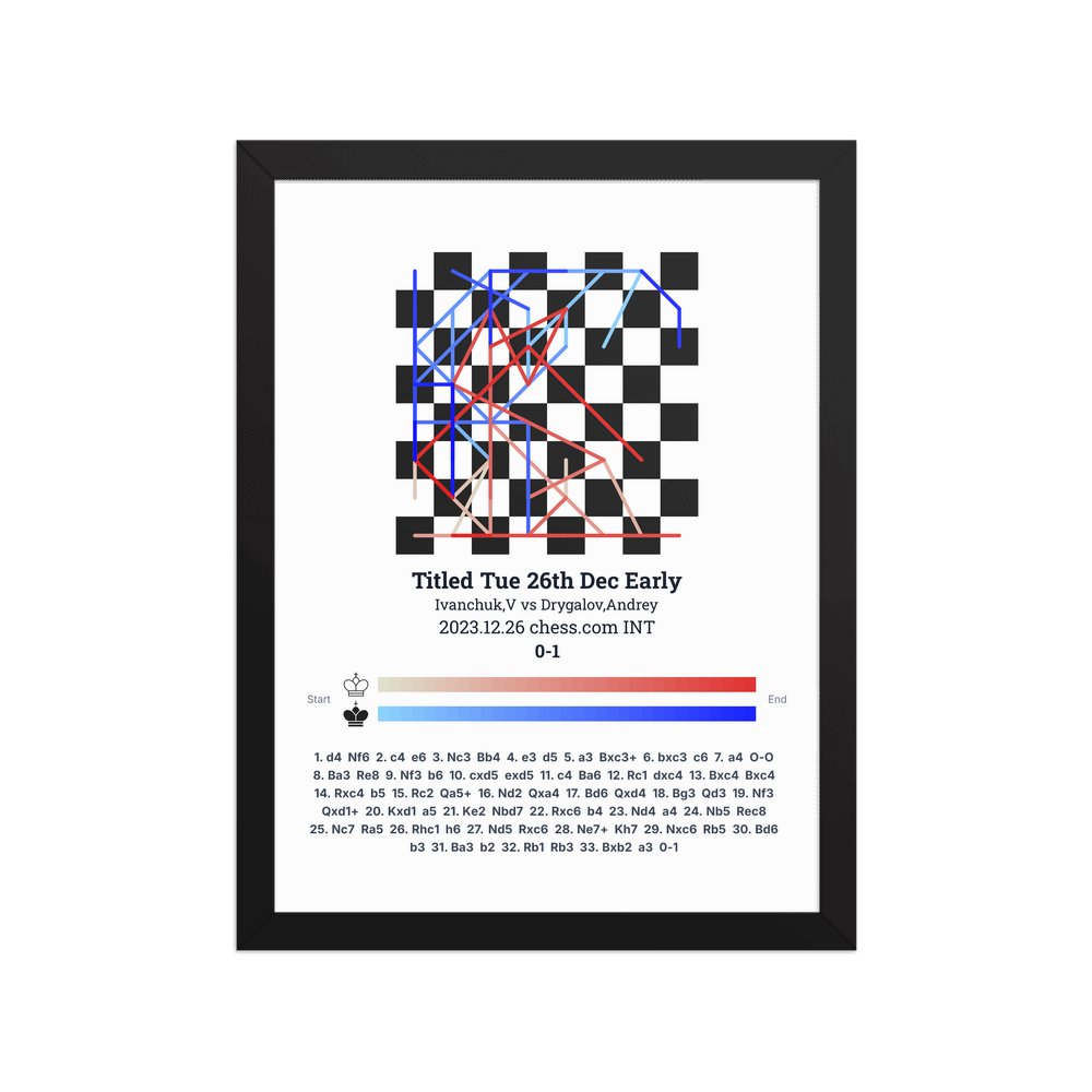 Museum-quality poster on thick, durable matte paper. A sharp, clean look for any chess visualisation.