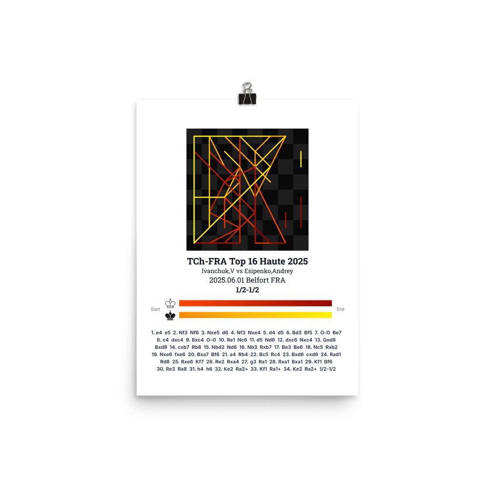 Museum-quality poster on thick, durable matte paper. A sharp, clean look for any chess visualisation.