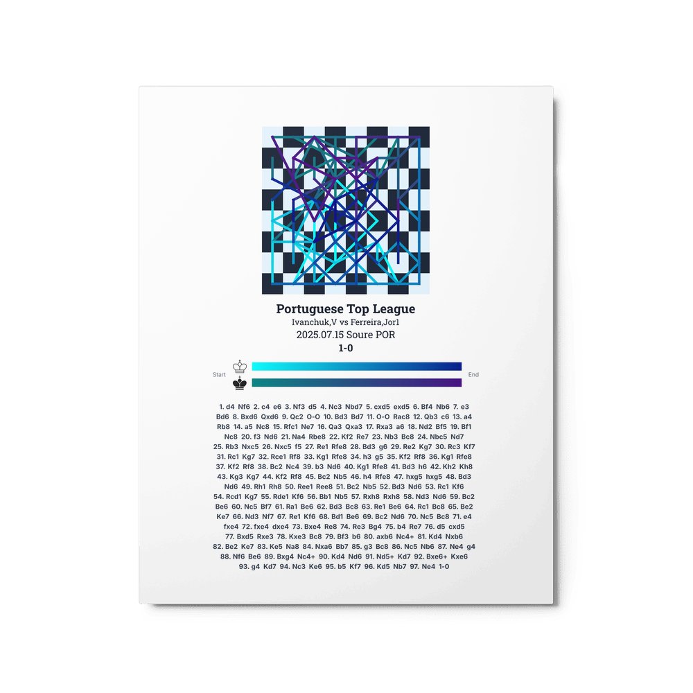 Museum-quality poster on thick, durable matte paper. A sharp, clean look for any chess visualisation.