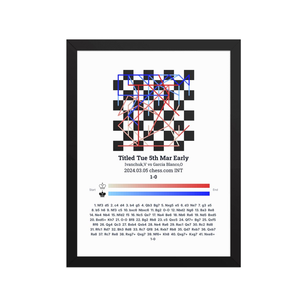 Museum-quality poster on thick, durable matte paper. A sharp, clean look for any chess visualisation.