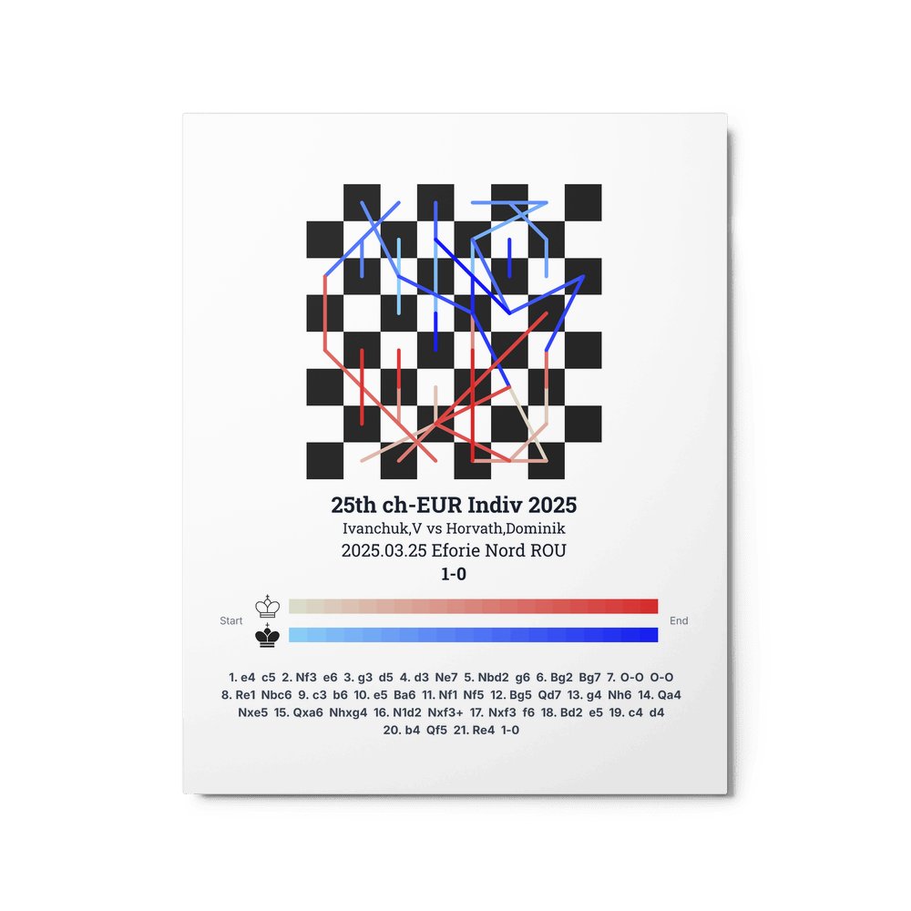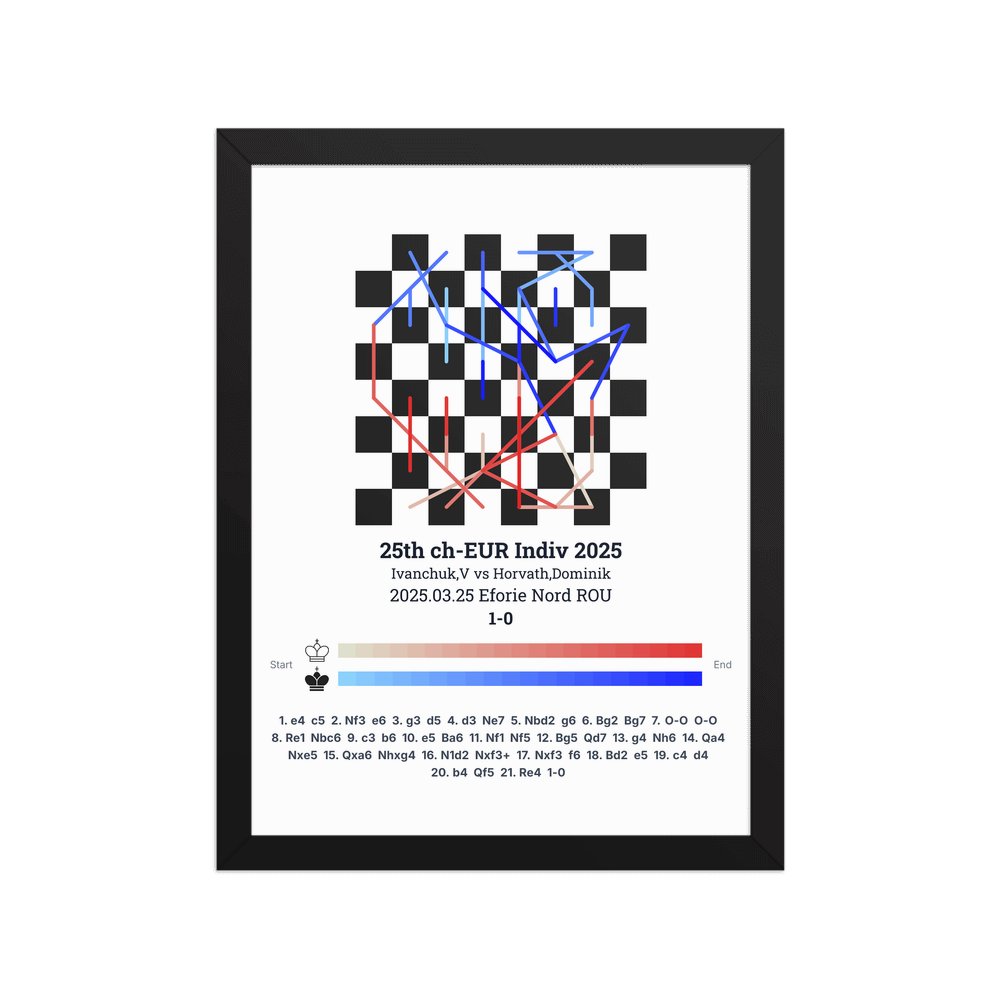 Museum-quality poster on thick, durable matte paper. A sharp, clean look for any chess visualisation.