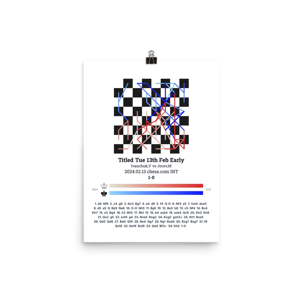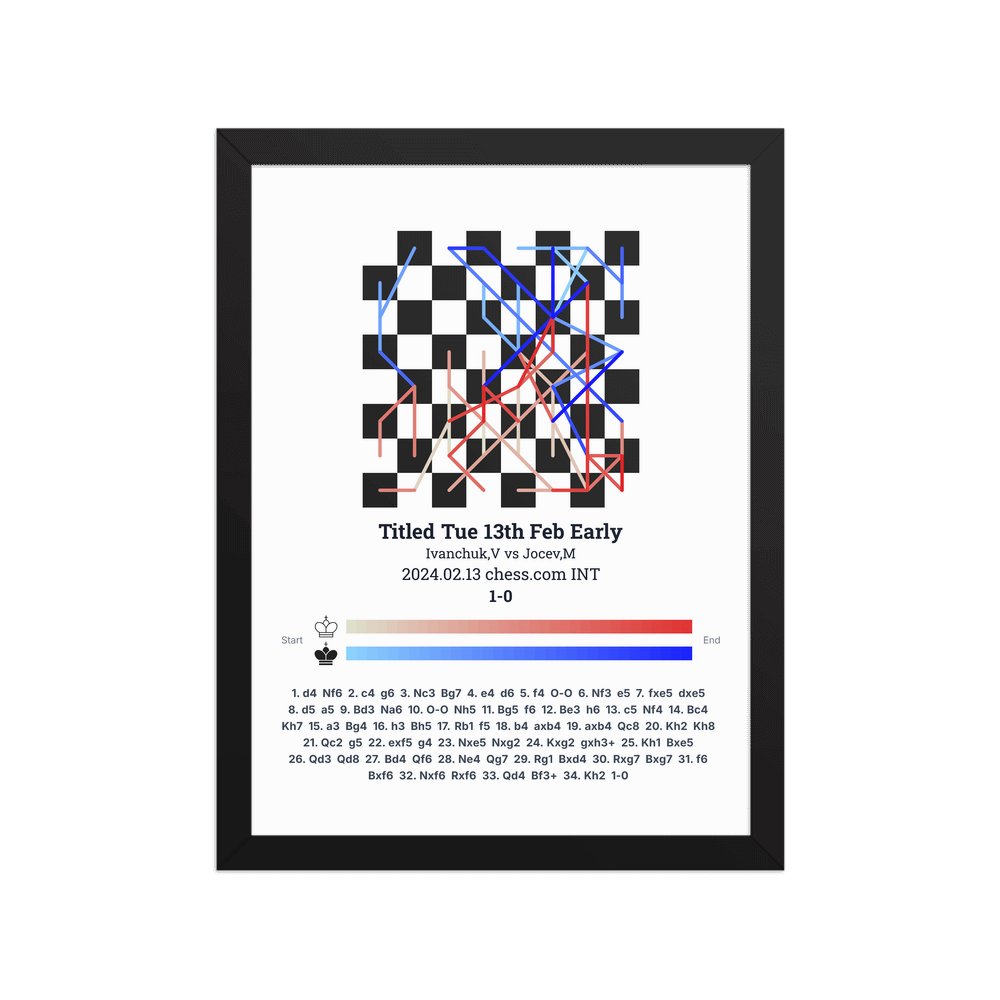 Museum-quality poster on thick, durable matte paper. A sharp, clean look for any chess visualisation.