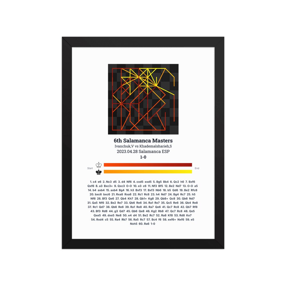 Museum-quality poster on thick, durable matte paper. A sharp, clean look for any chess visualisation.