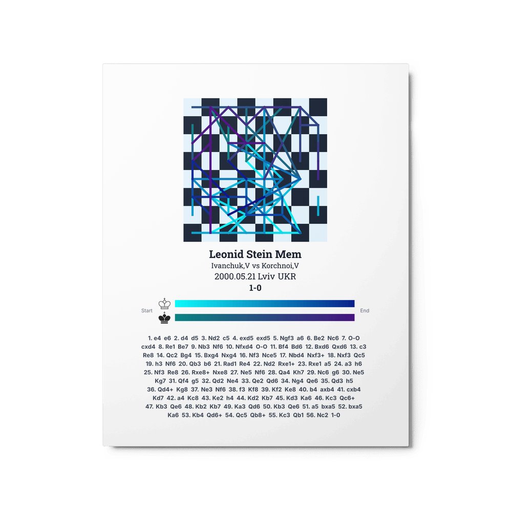 Museum-quality poster on thick, durable matte paper. A sharp, clean look for any chess visualisation.