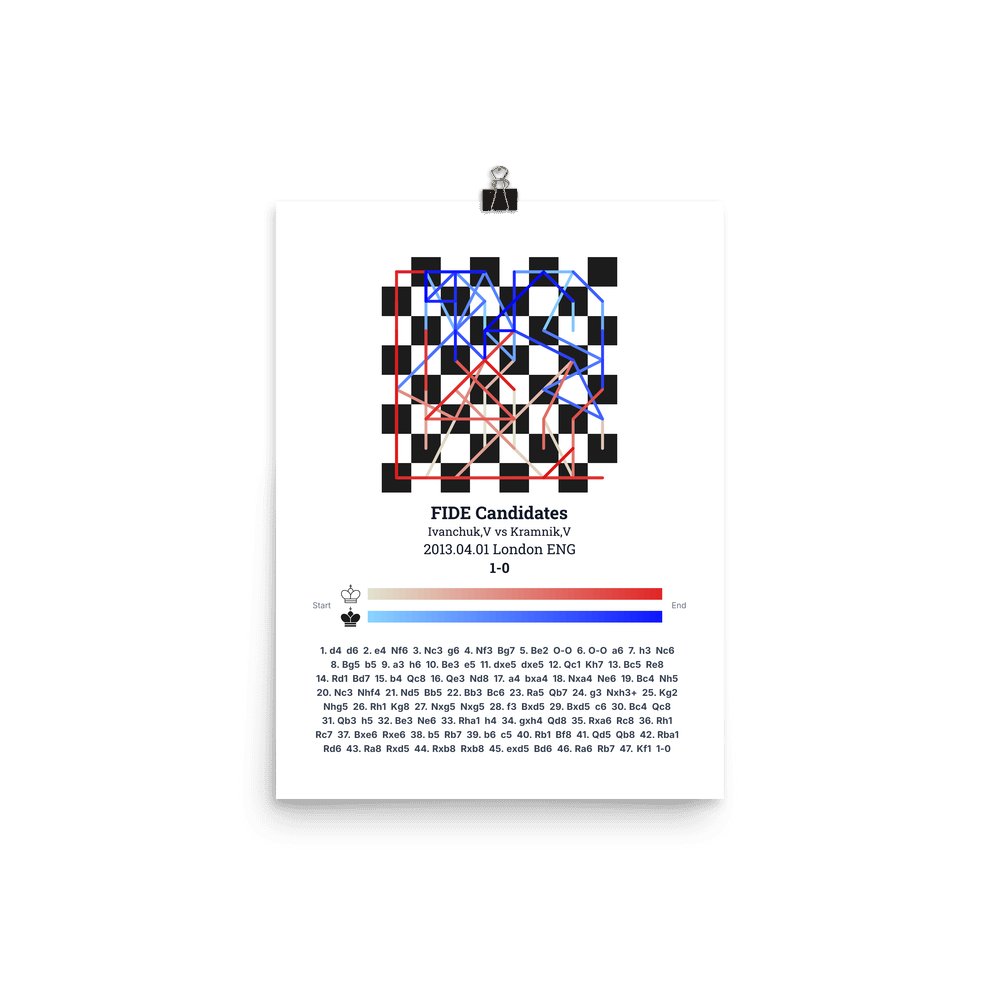 Museum-quality poster on thick, durable matte paper. A sharp, clean look for any chess visualisation.
