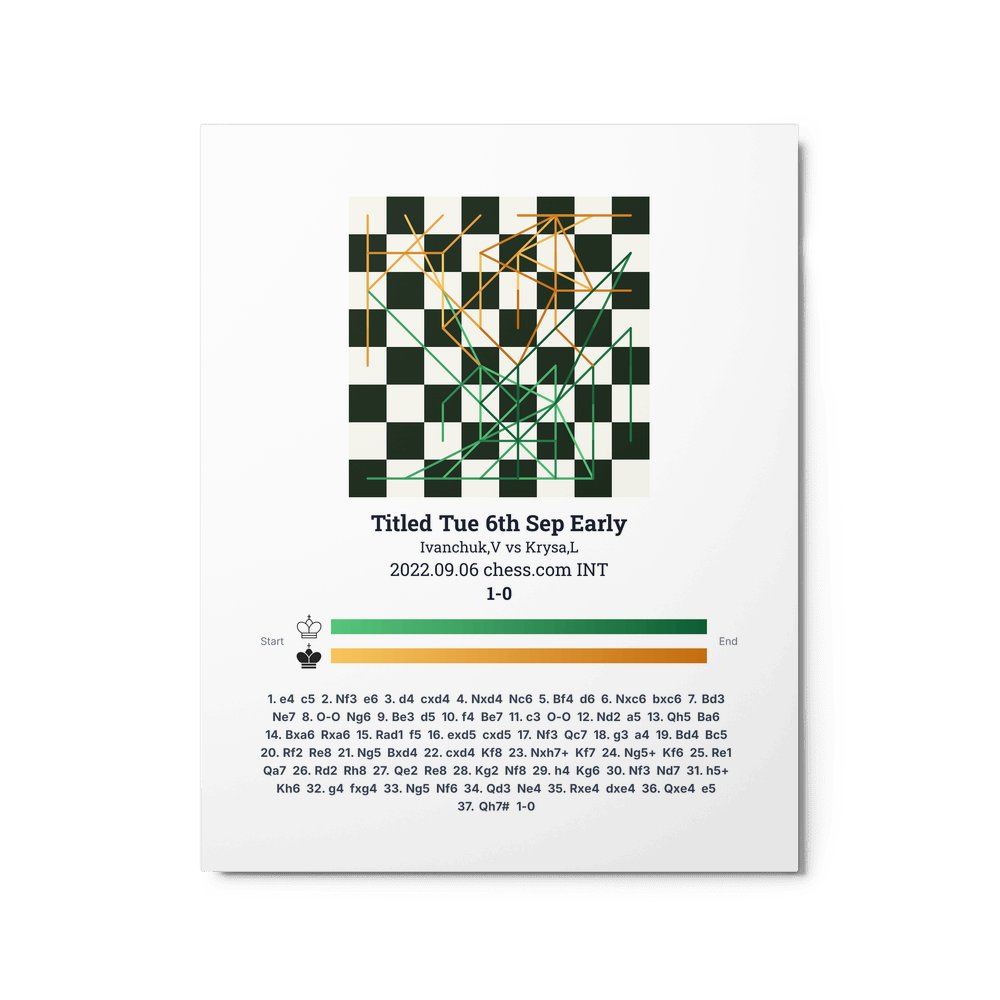 Museum-quality poster on thick, durable matte paper. A sharp, clean look for any chess visualisation.