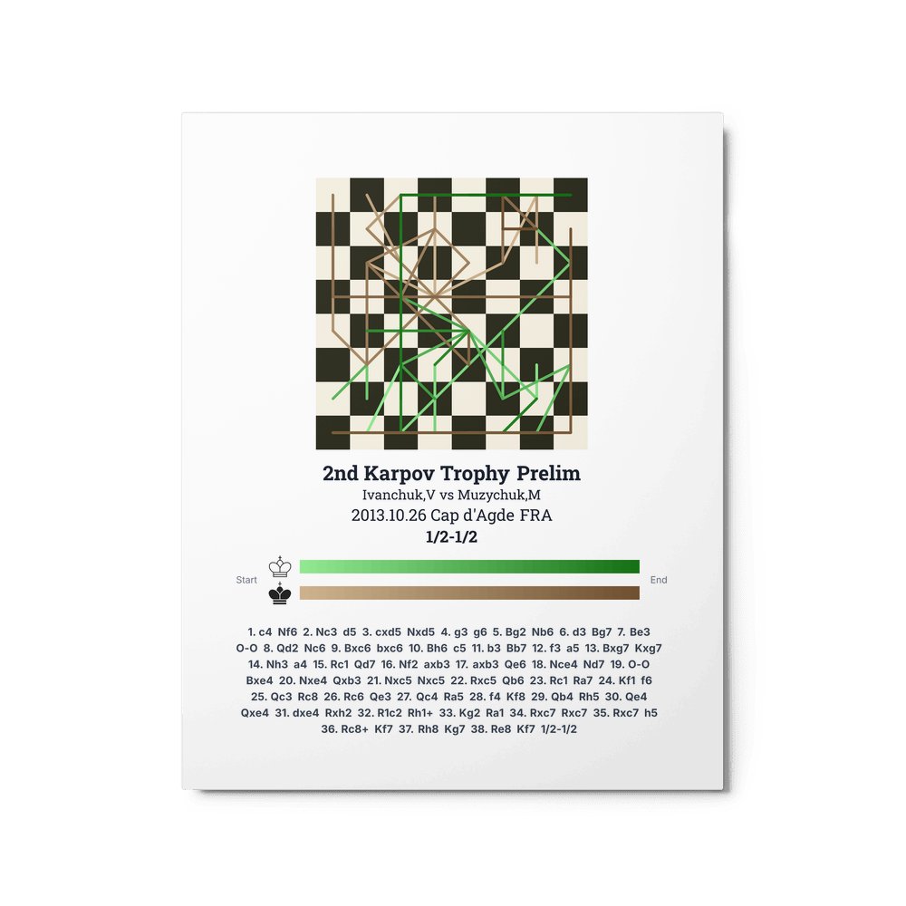 Museum-quality poster on thick, durable matte paper. A sharp, clean look for any chess visualisation.