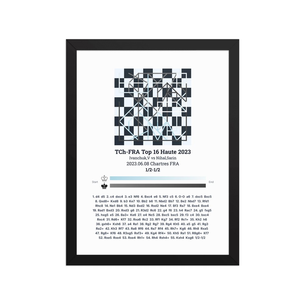 Museum-quality poster on thick, durable matte paper. A sharp, clean look for any chess visualisation.