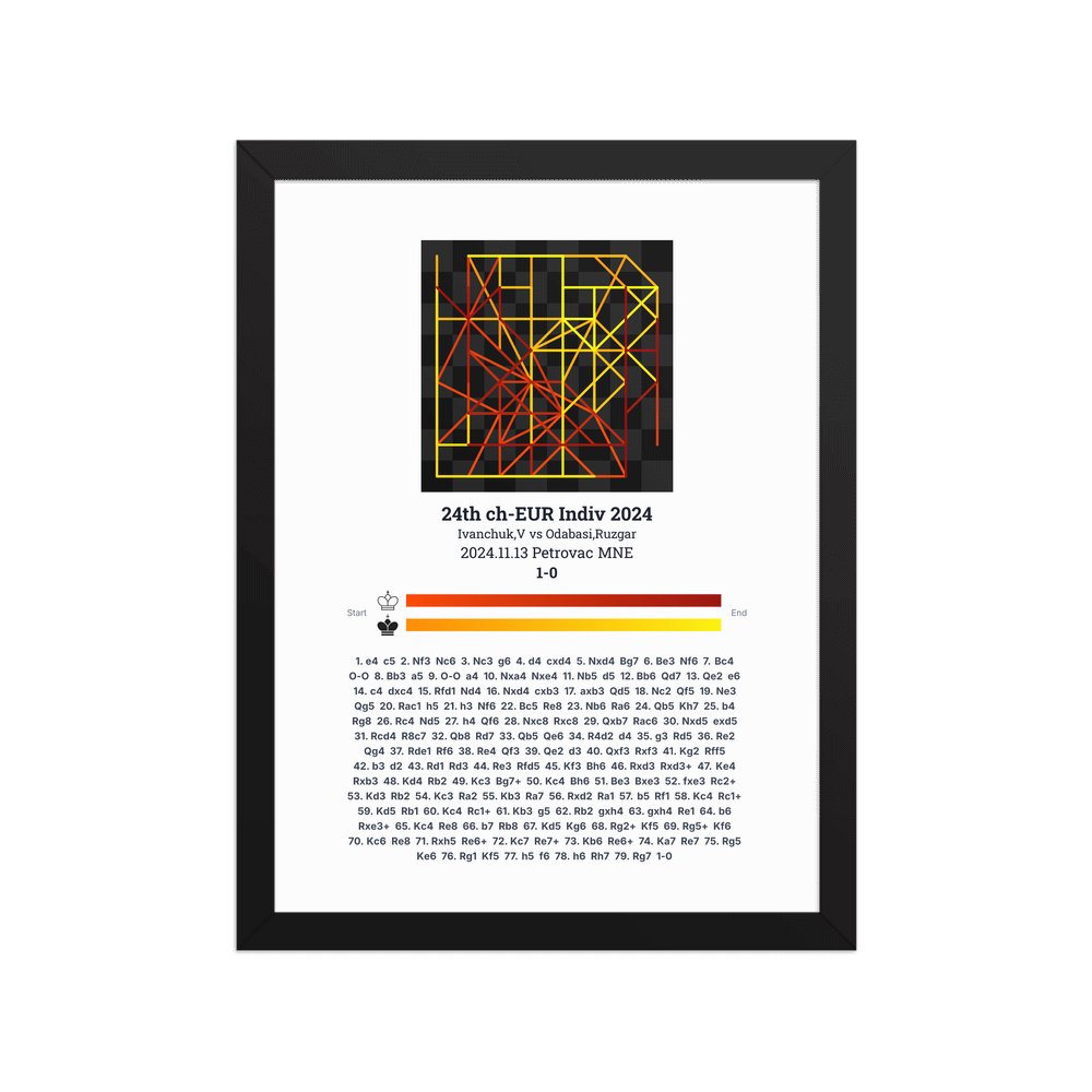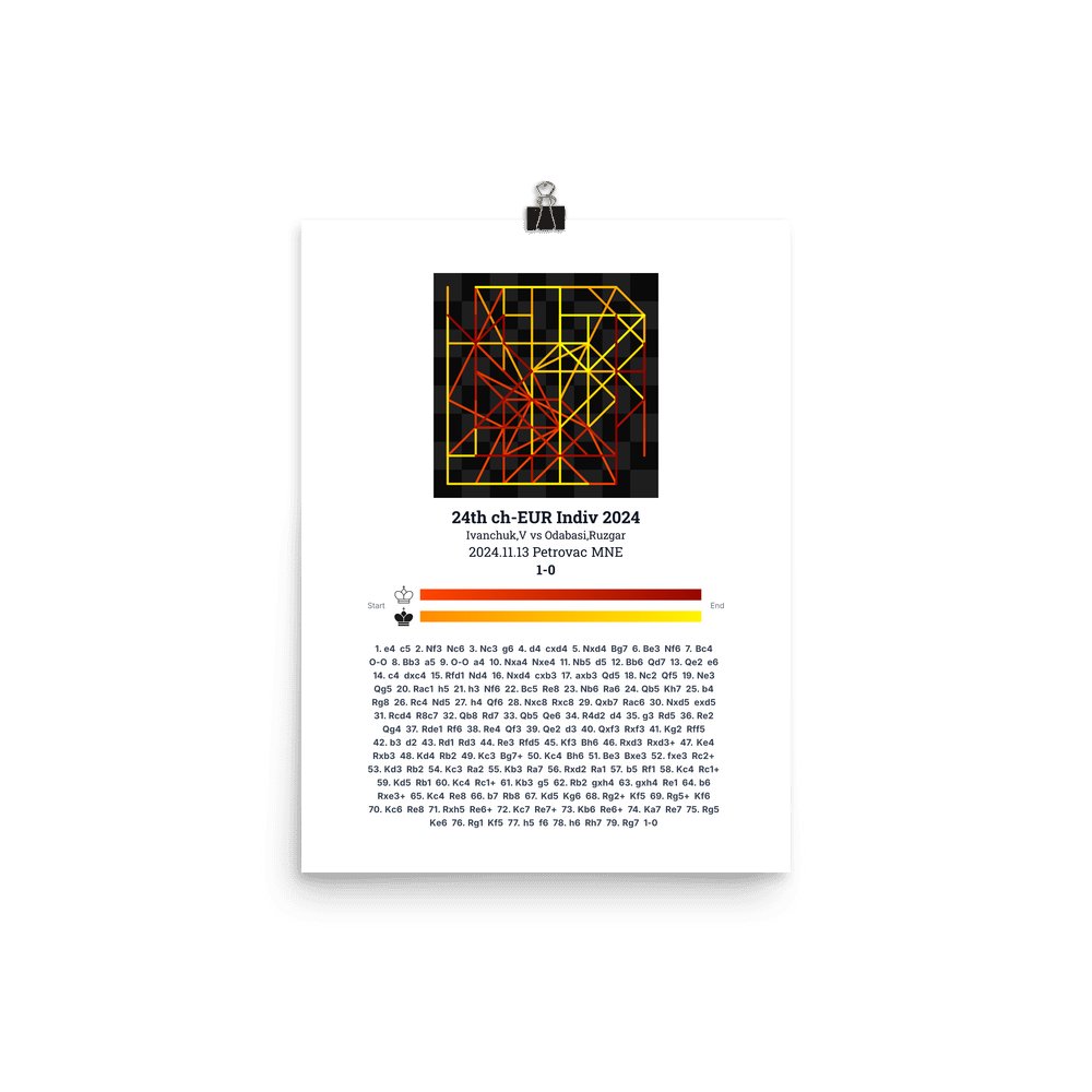 Museum-quality poster on thick, durable matte paper. A sharp, clean look for any chess visualisation.