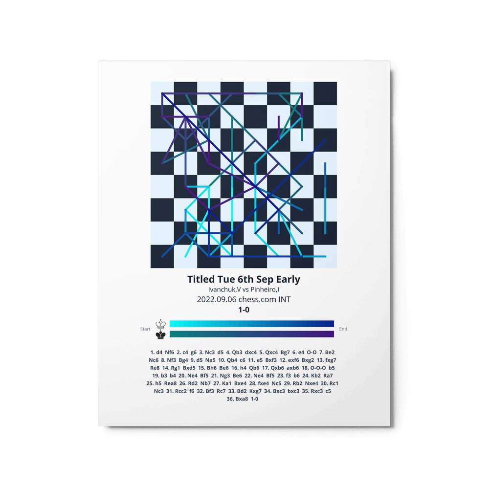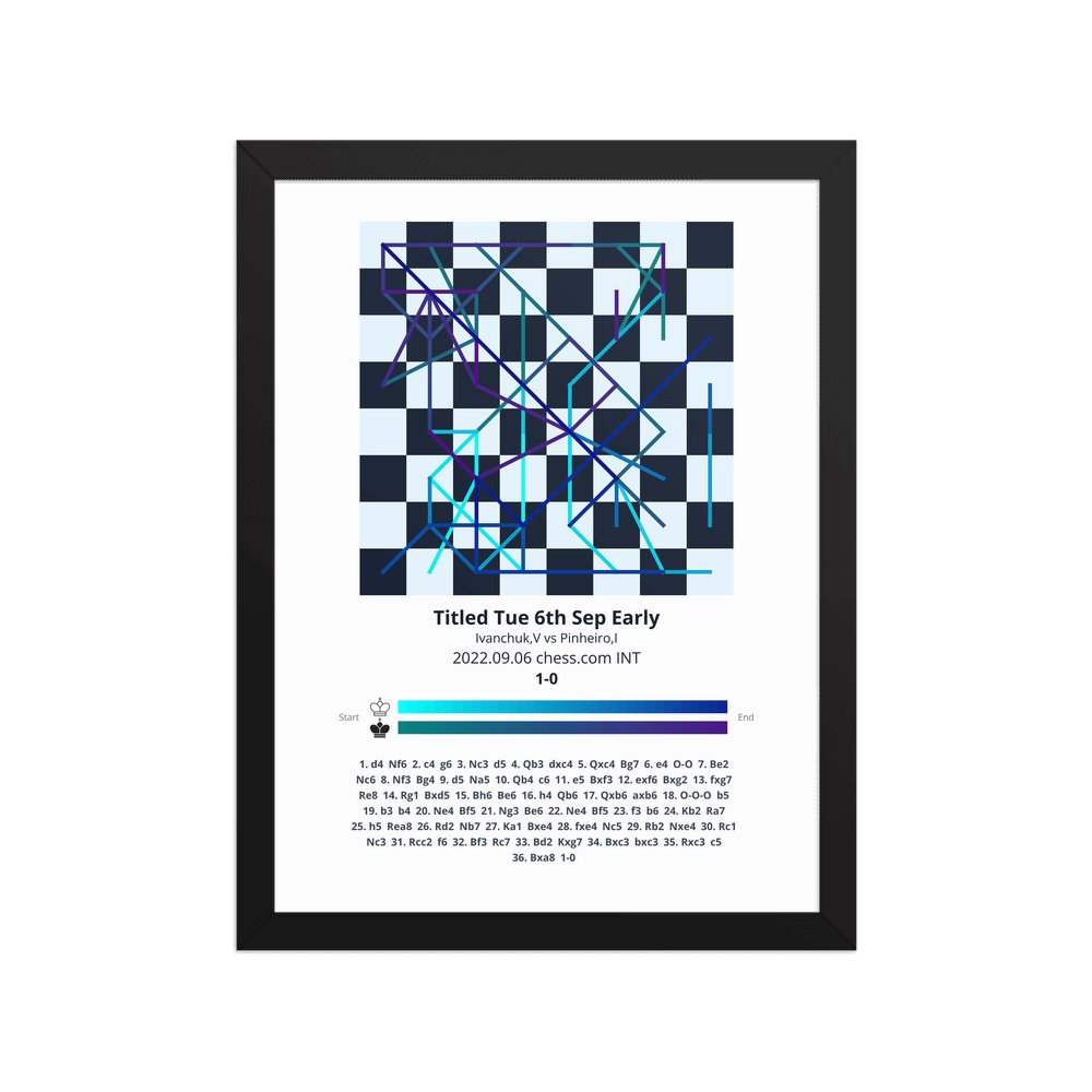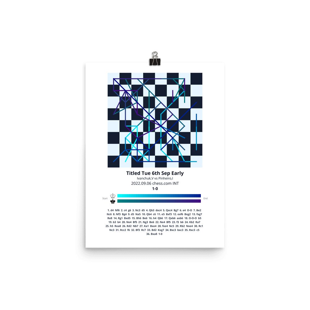 Museum-quality poster on thick, durable matte paper. A sharp, clean look for any chess visualisation.