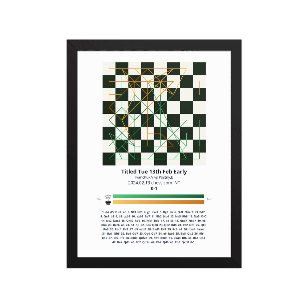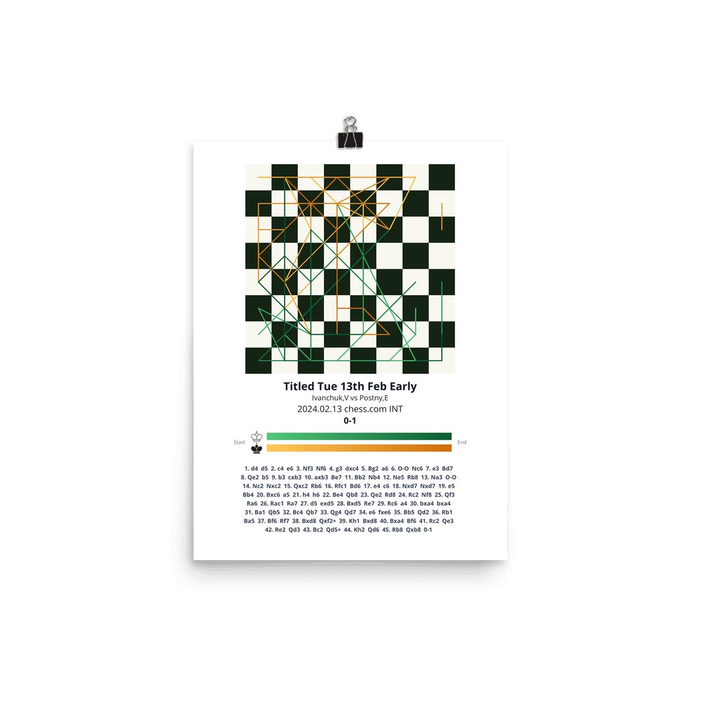 Museum-quality poster on thick, durable matte paper. A sharp, clean look for any chess visualisation.