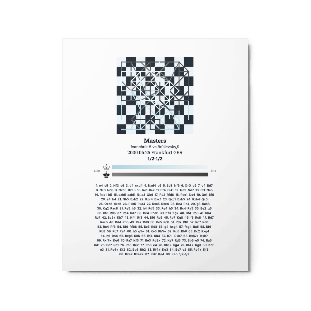 Museum-quality poster on thick, durable matte paper. A sharp, clean look for any chess visualisation.