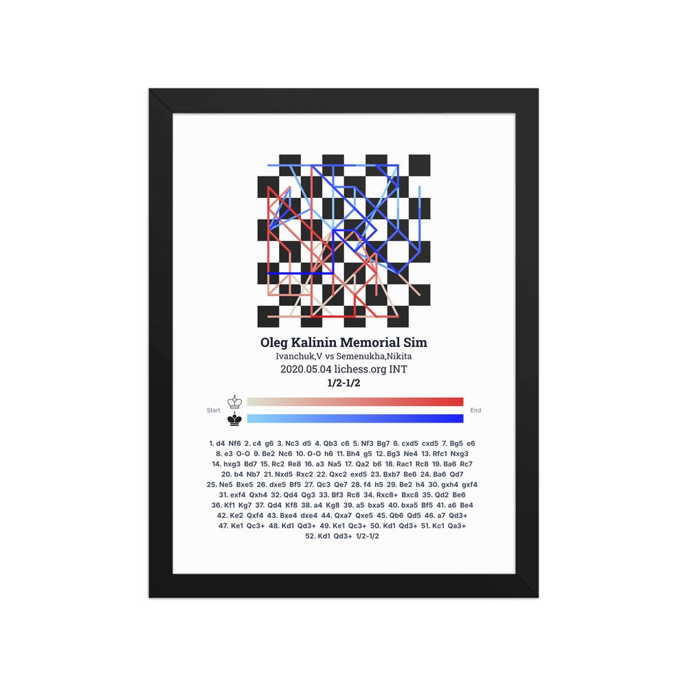 Museum-quality poster on thick, durable matte paper. A sharp, clean look for any chess visualisation.
