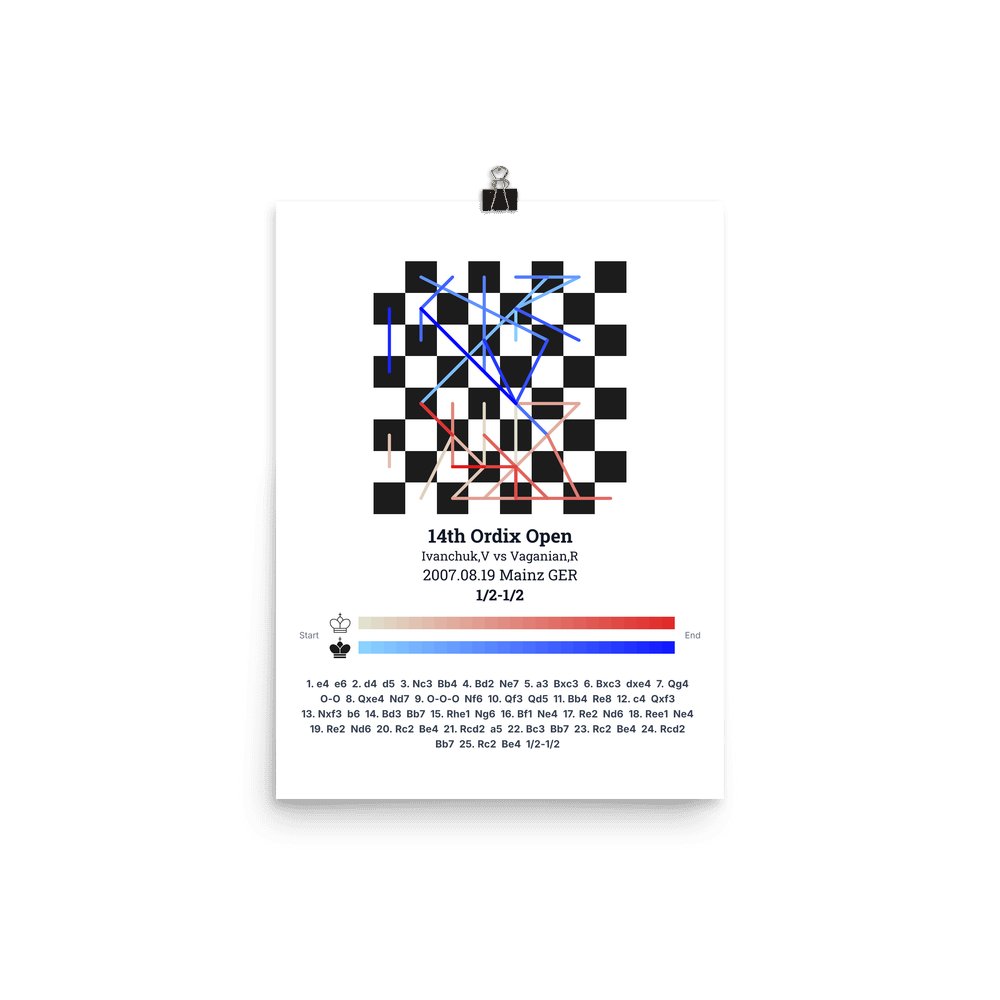 Museum-quality poster on thick, durable matte paper. A sharp, clean look for any chess visualisation.