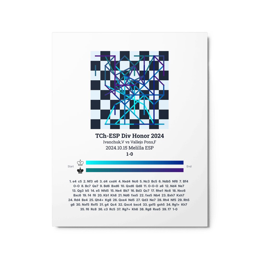 Museum-quality poster on thick, durable matte paper. A sharp, clean look for any chess visualisation.