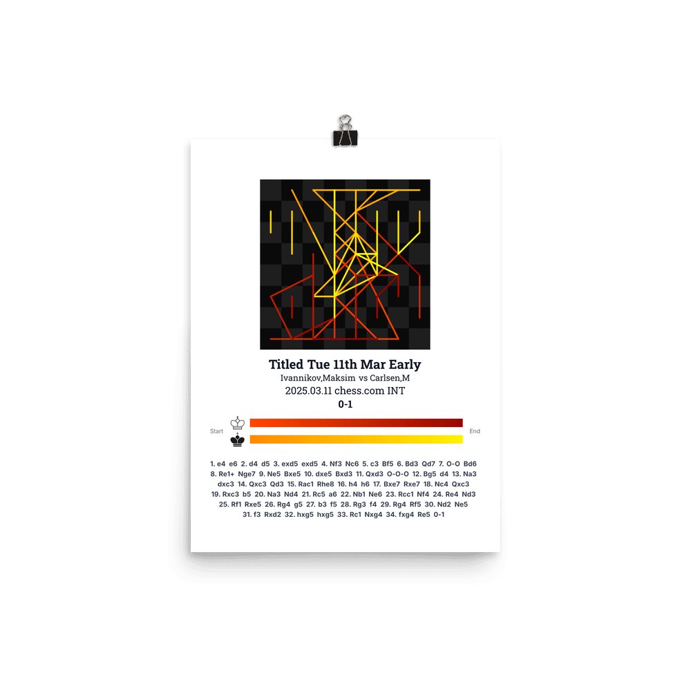 Museum-quality poster on thick, durable matte paper. A sharp, clean look for any chess visualisation.