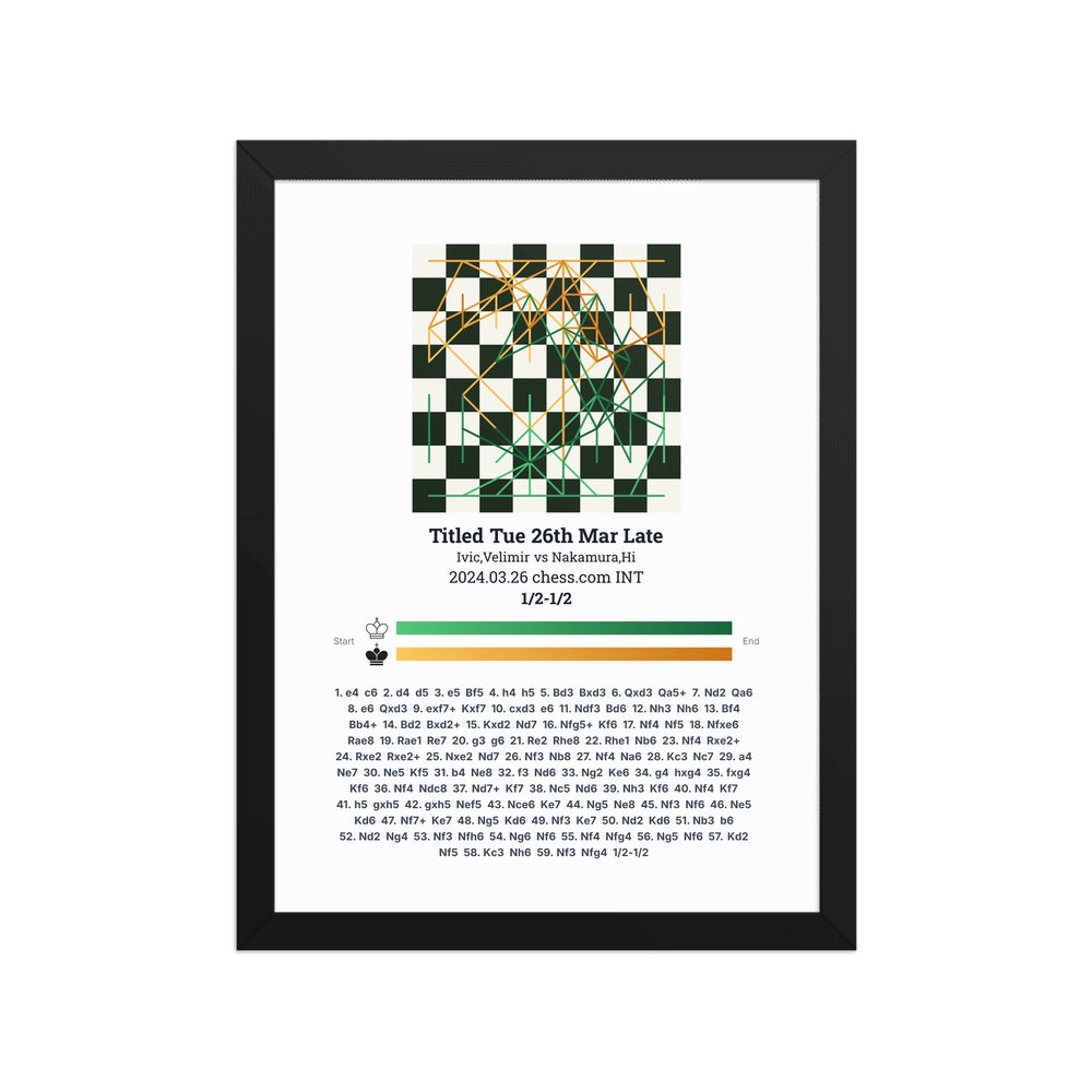 Museum-quality poster on thick, durable matte paper. A sharp, clean look for any chess visualisation.