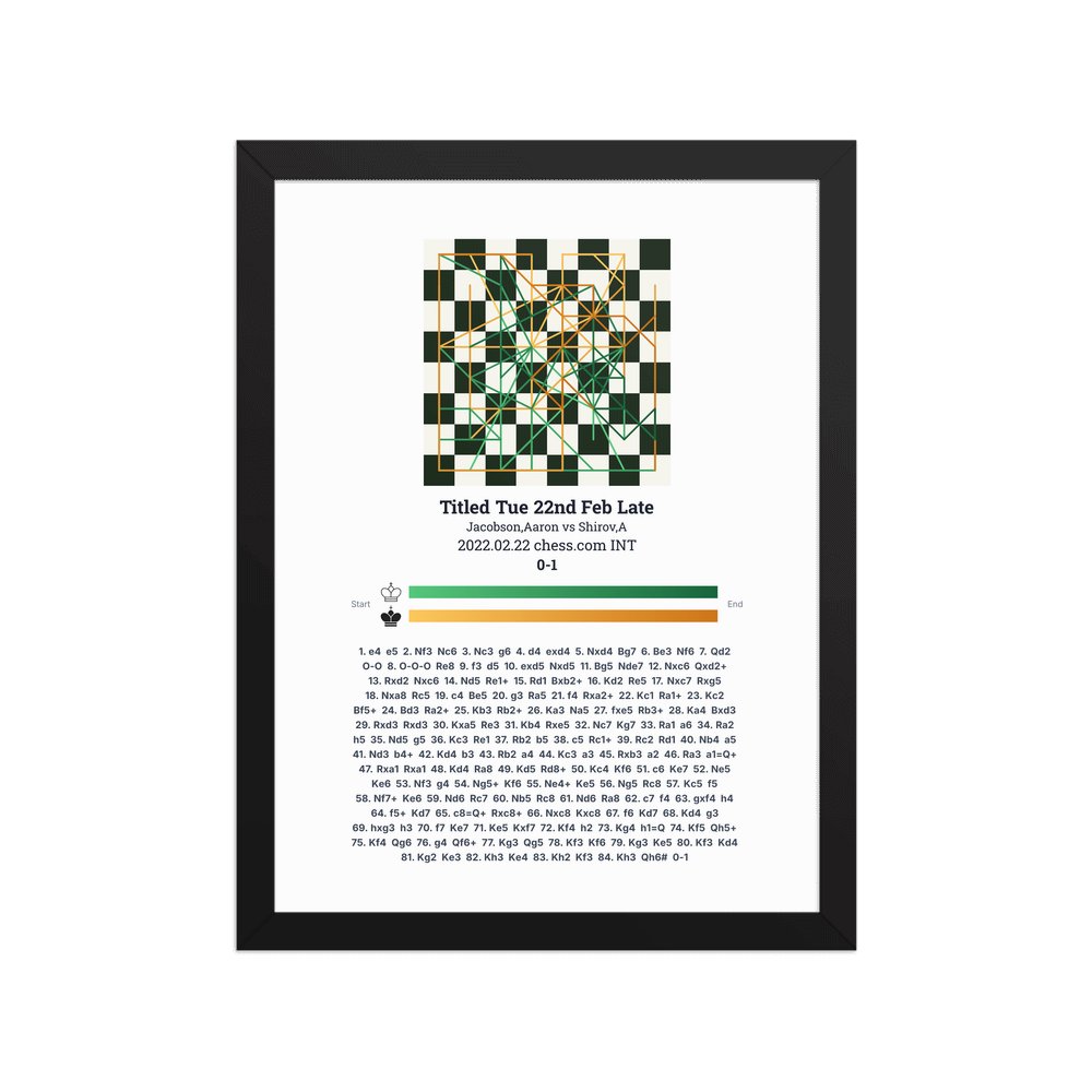Museum-quality poster on thick, durable matte paper. A sharp, clean look for any chess visualisation.