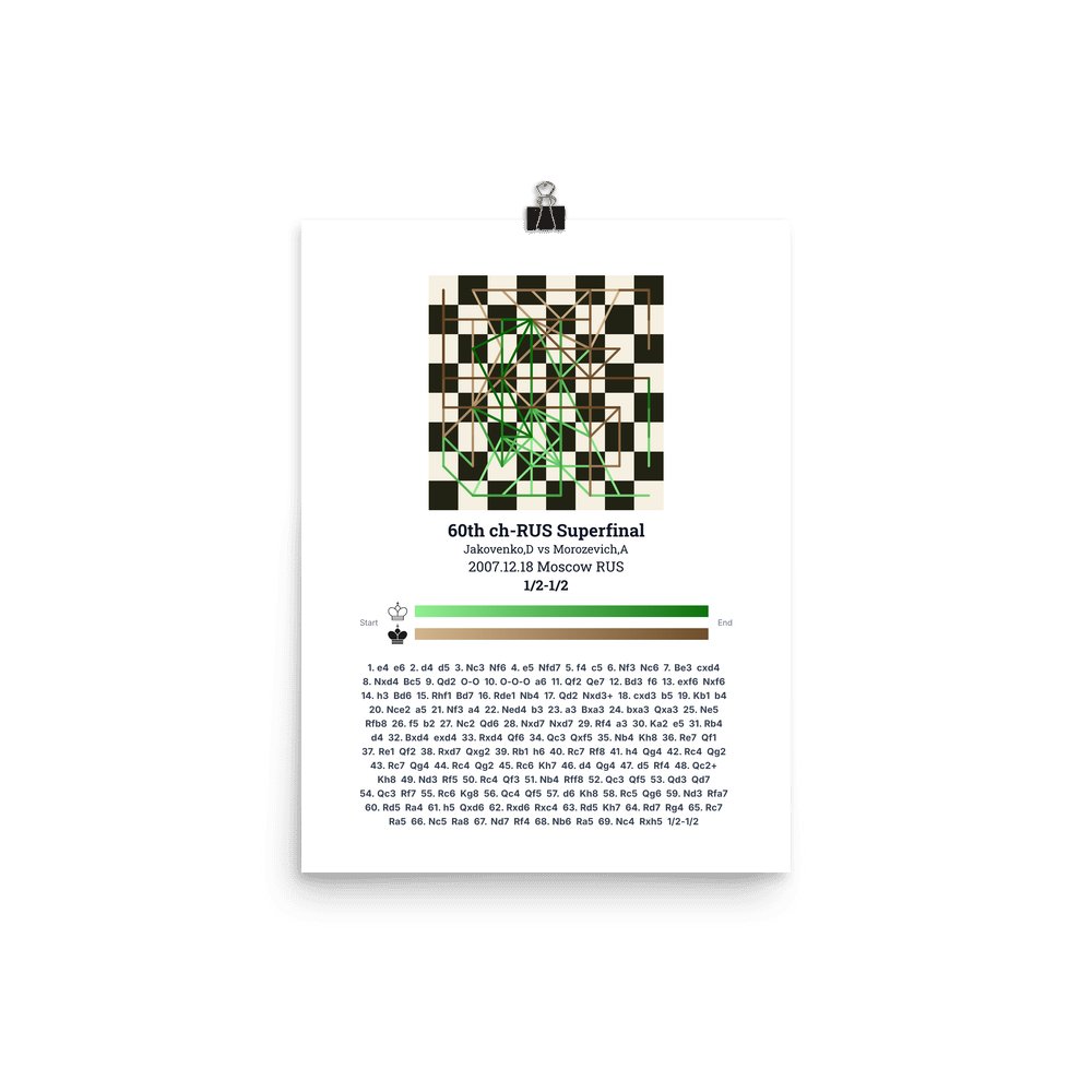 Museum-quality poster on thick, durable matte paper. A sharp, clean look for any chess visualisation.