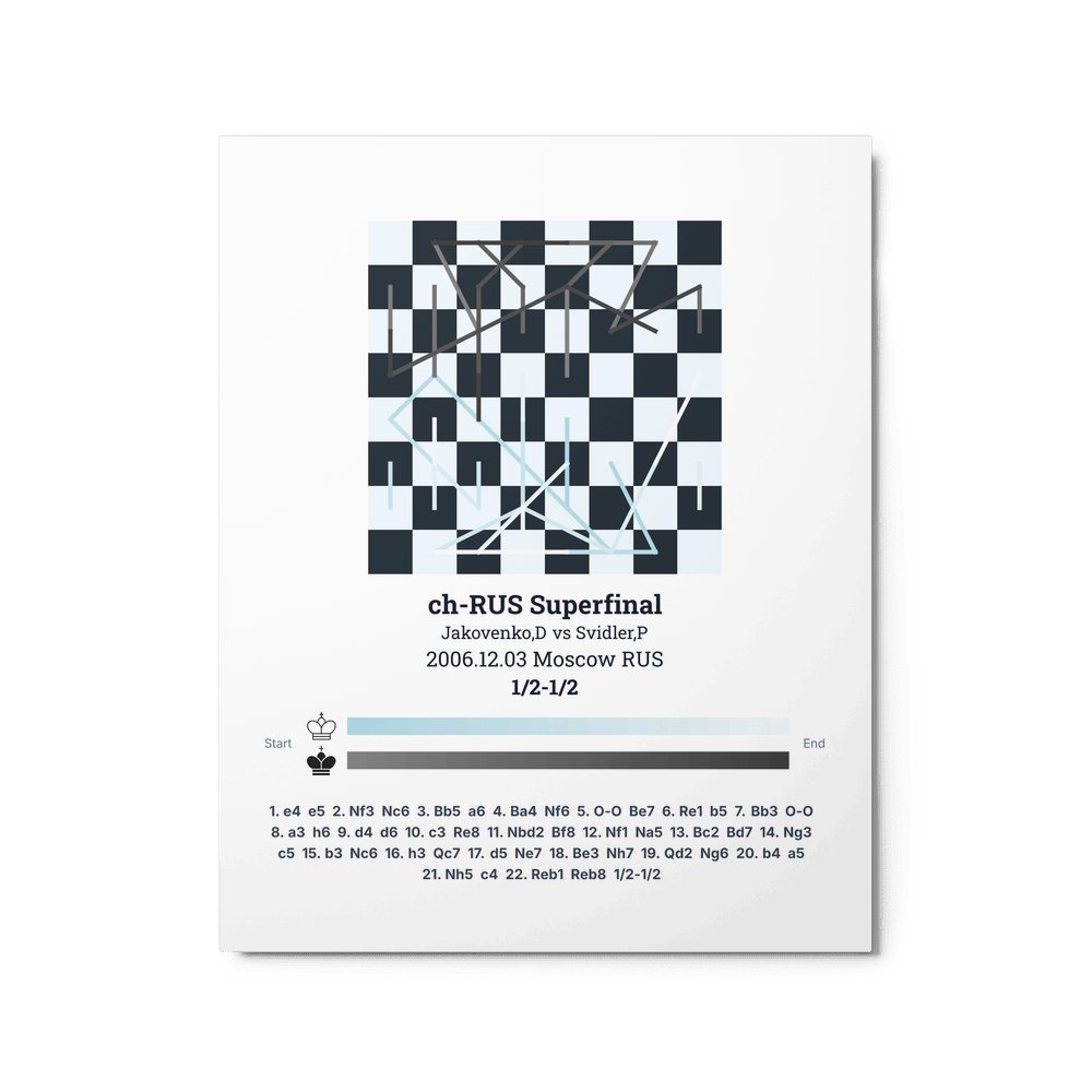 Museum-quality poster on thick, durable matte paper. A sharp, clean look for any chess visualisation.