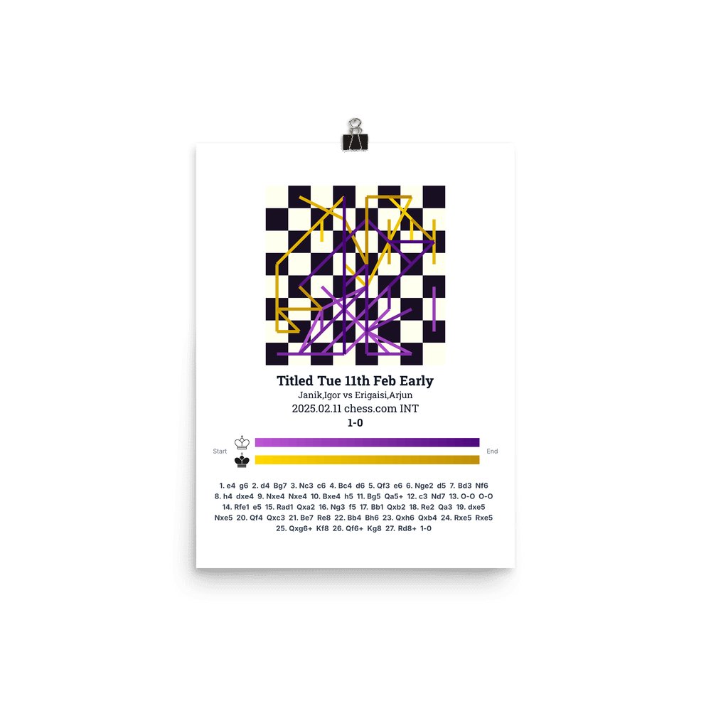 Museum-quality poster on thick, durable matte paper. A sharp, clean look for any chess visualisation.