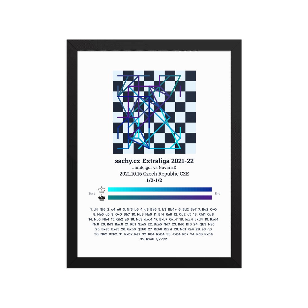 Museum-quality poster on thick, durable matte paper. A sharp, clean look for any chess visualisation.