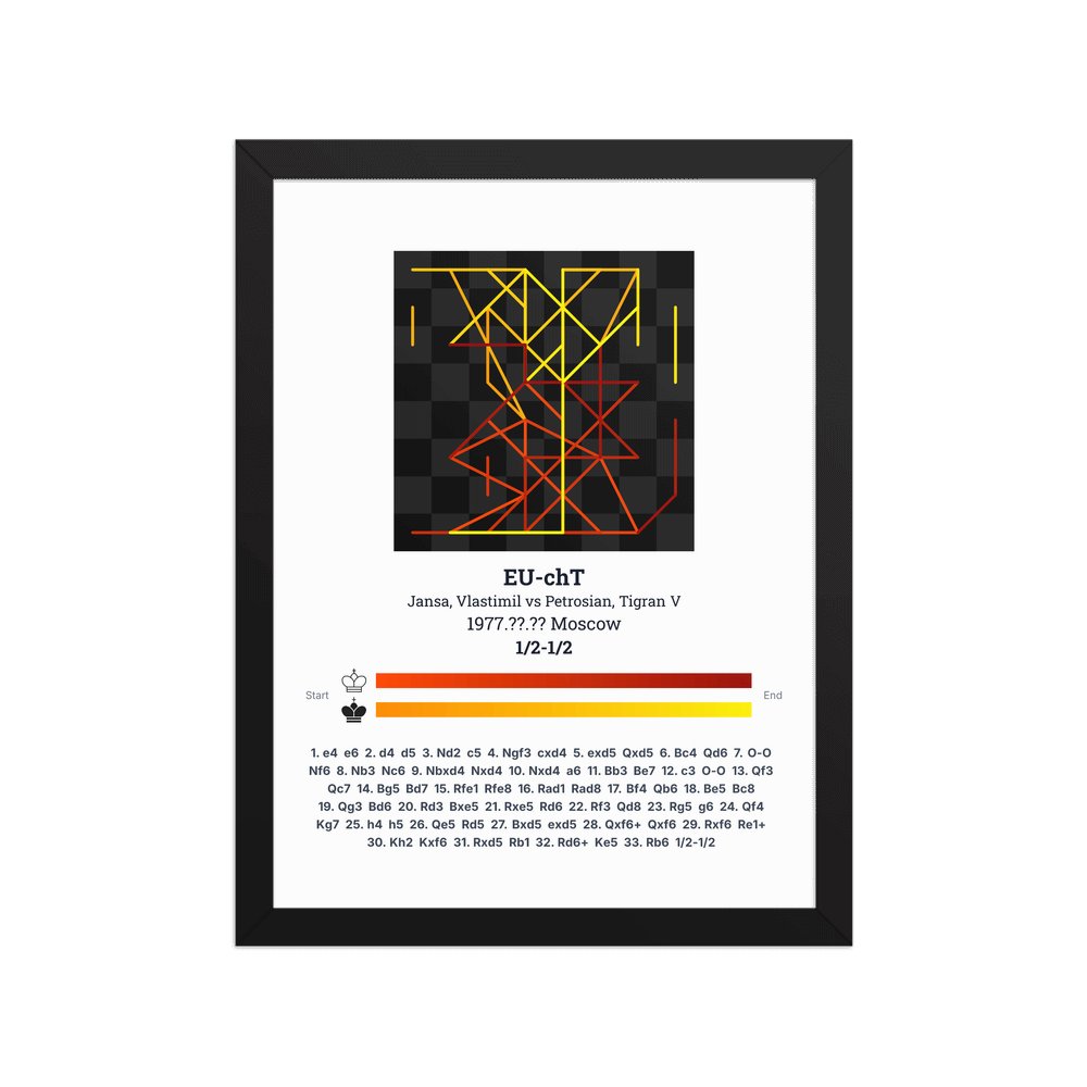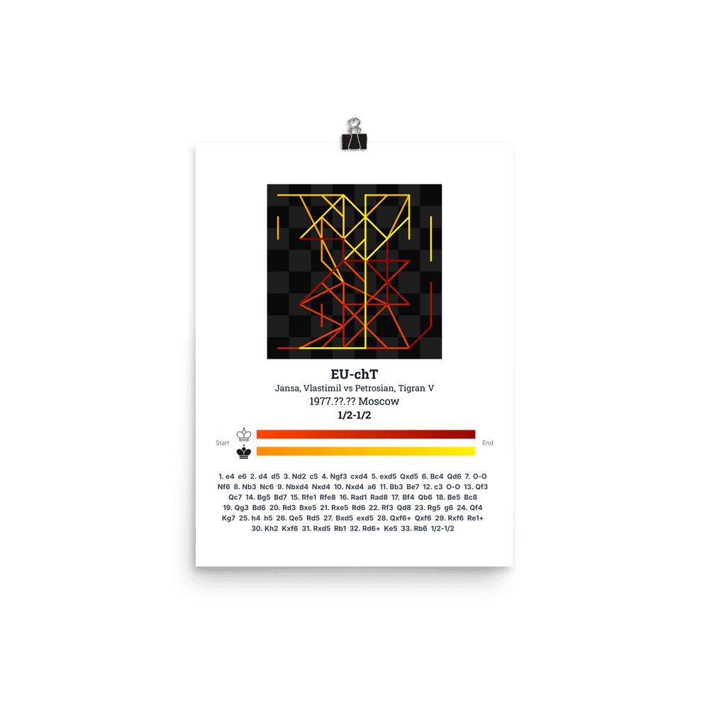 Museum-quality poster on thick, durable matte paper. A sharp, clean look for any chess visualisation.