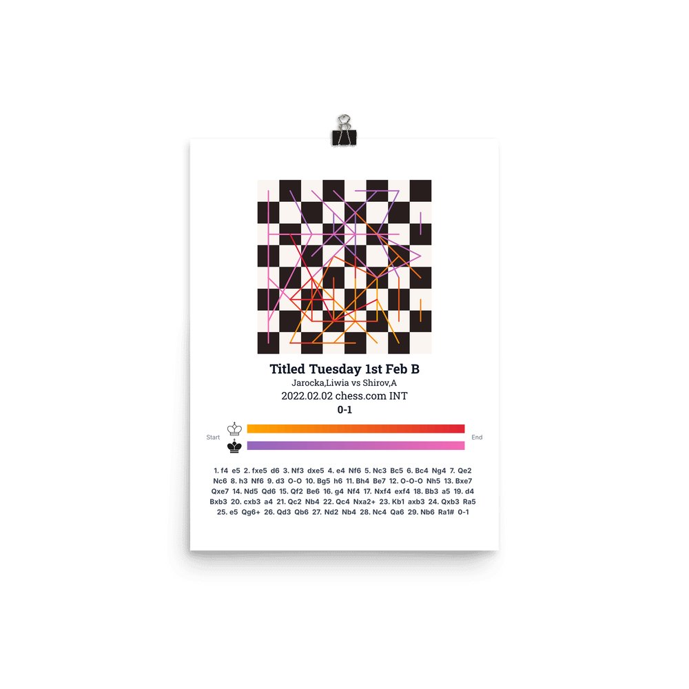 Museum-quality poster on thick, durable matte paper. A sharp, clean look for any chess visualisation.