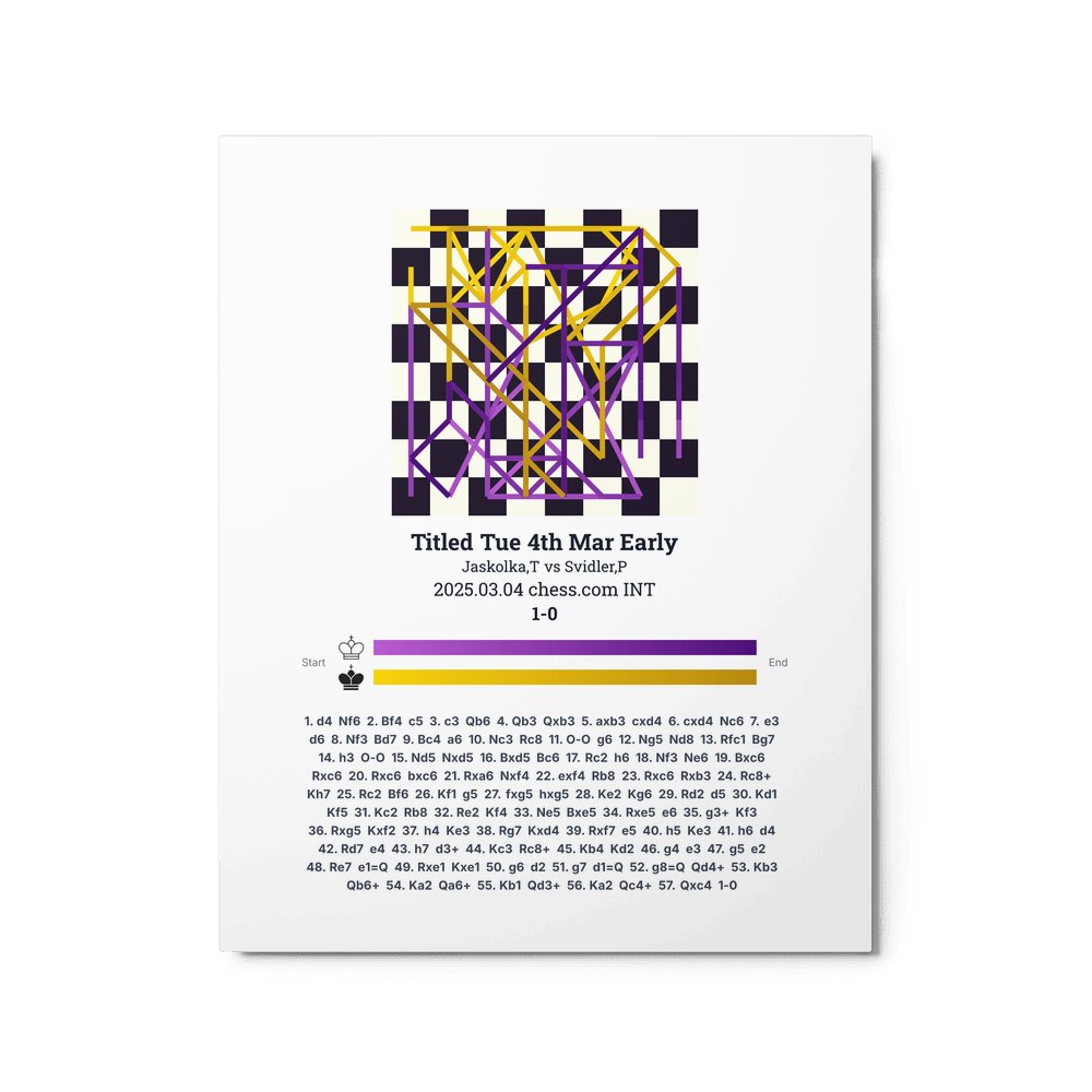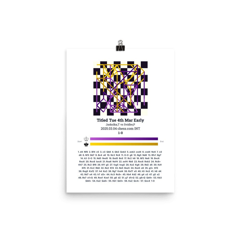 Museum-quality poster on thick, durable matte paper. A sharp, clean look for any chess visualisation.