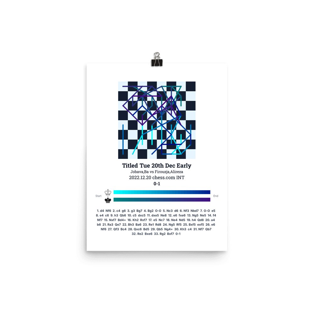 Museum-quality poster on thick, durable matte paper. A sharp, clean look for any chess visualisation.