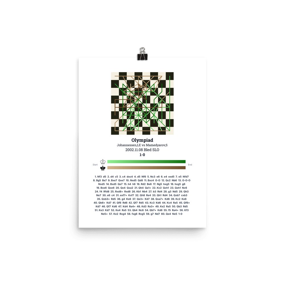 Museum-quality poster on thick, durable matte paper. A sharp, clean look for any chess visualisation.