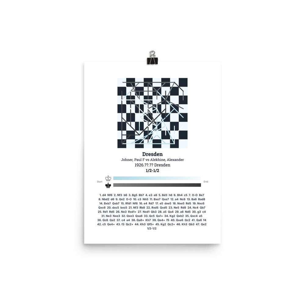 Museum-quality poster on thick, durable matte paper. A sharp, clean look for any chess visualisation.