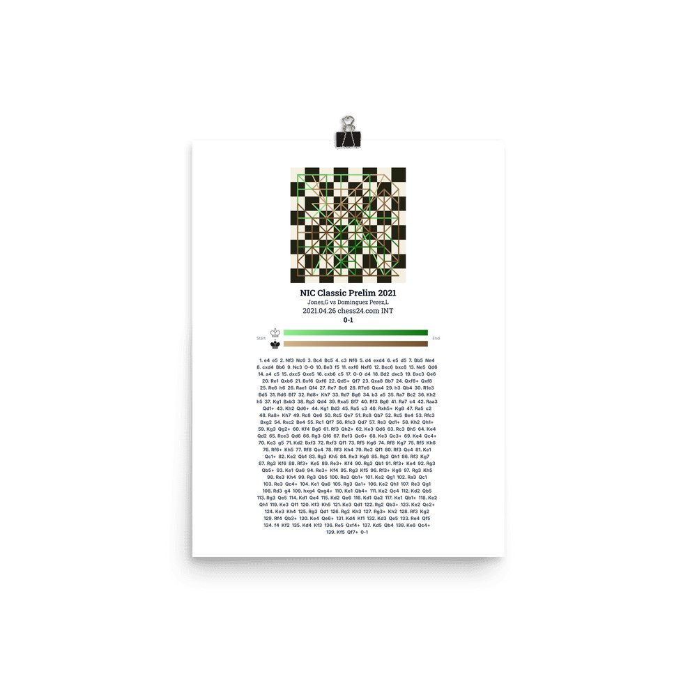 Museum-quality poster on thick, durable matte paper. A sharp, clean look for any chess visualisation.