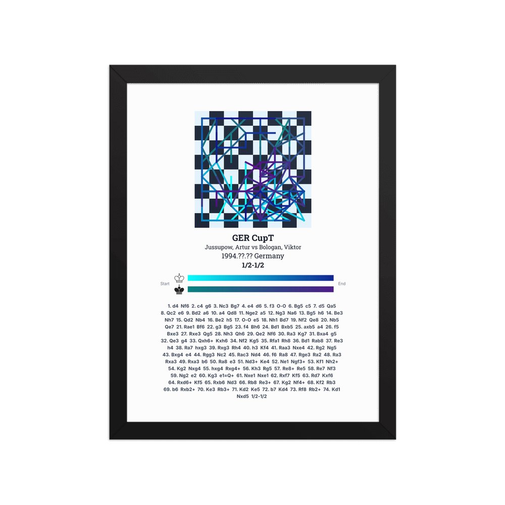 Museum-quality poster on thick, durable matte paper. A sharp, clean look for any chess visualisation.