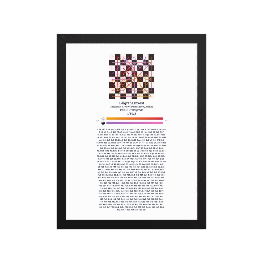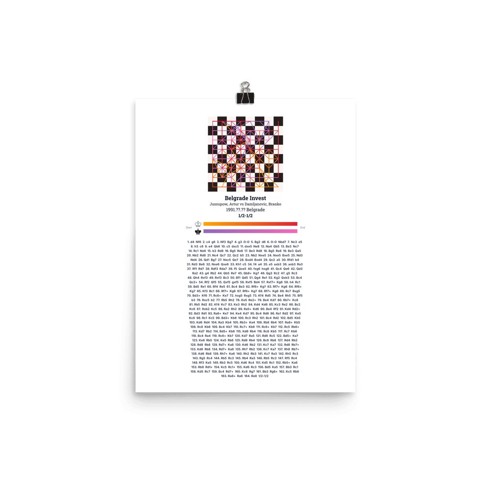 Museum-quality poster on thick, durable matte paper. A sharp, clean look for any chess visualisation.