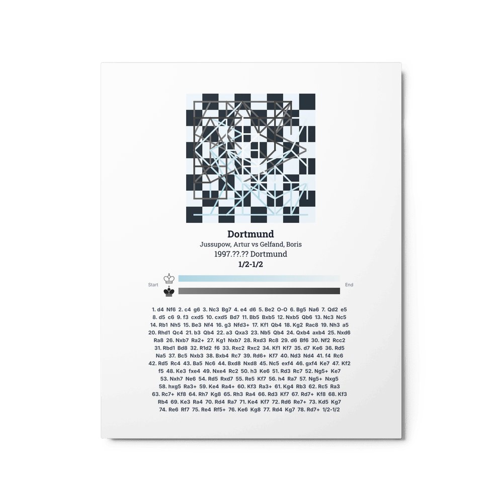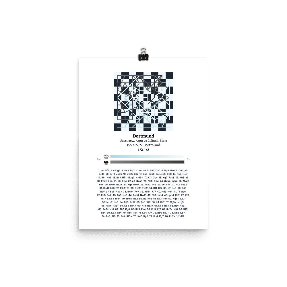 Museum-quality poster on thick, durable matte paper. A sharp, clean look for any chess visualisation.