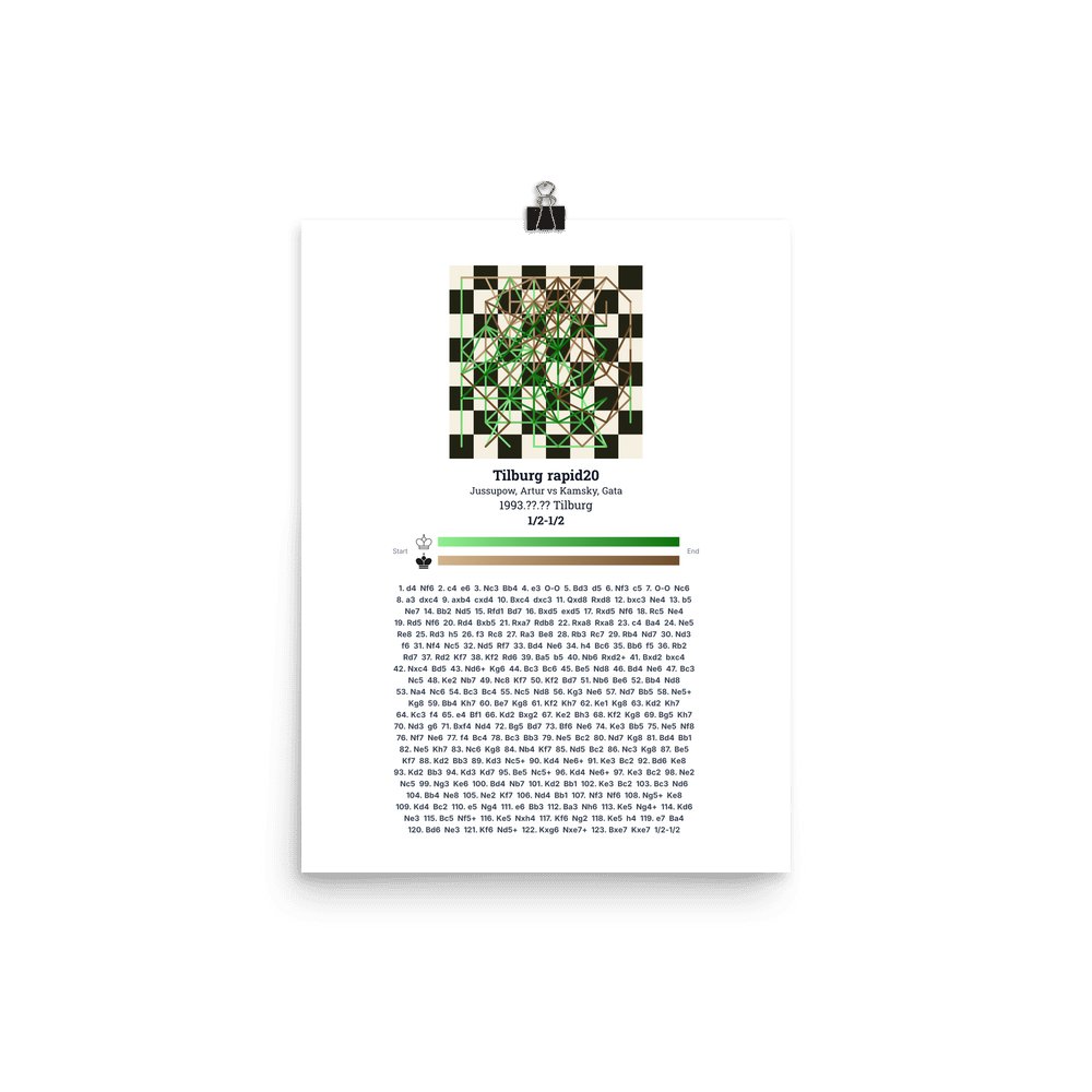 Museum-quality poster on thick, durable matte paper. A sharp, clean look for any chess visualisation.