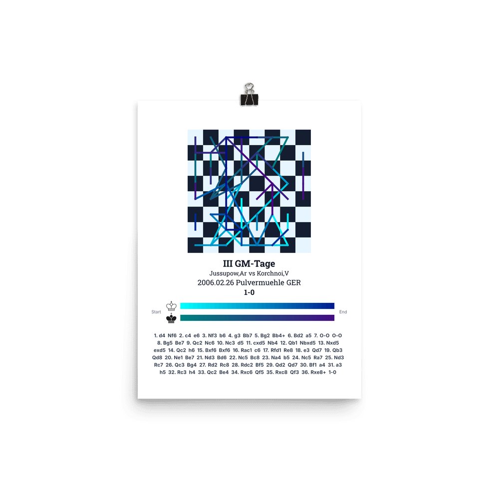 Museum-quality poster on thick, durable matte paper. A sharp, clean look for any chess visualisation.