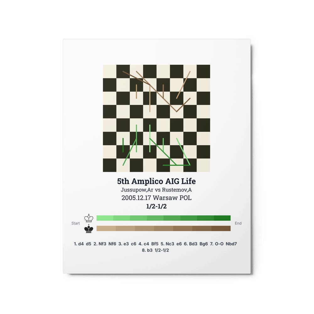 Museum-quality poster on thick, durable matte paper. A sharp, clean look for any chess visualisation.