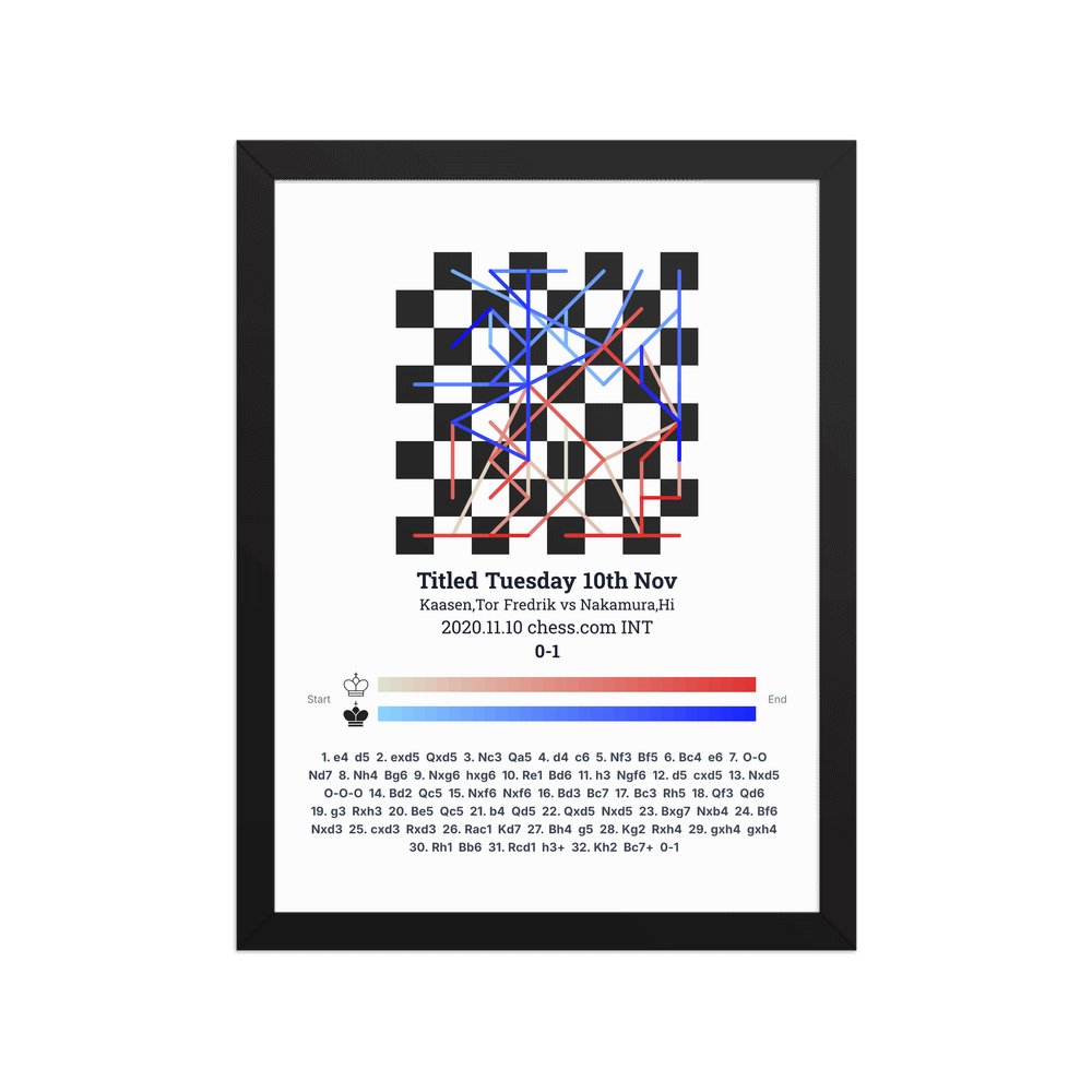 Museum-quality poster on thick, durable matte paper. A sharp, clean look for any chess visualisation.