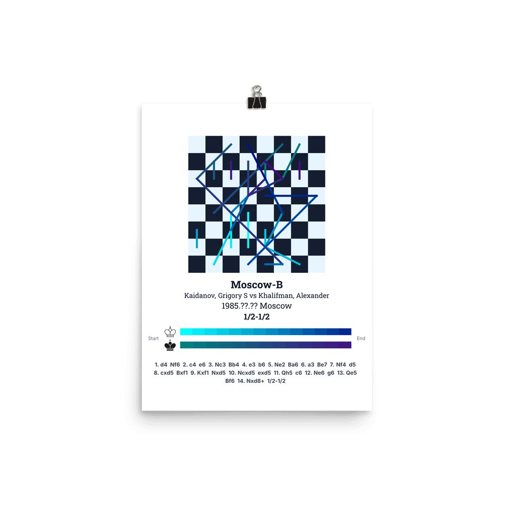 Museum-quality poster on thick, durable matte paper. A sharp, clean look for any chess visualisation.