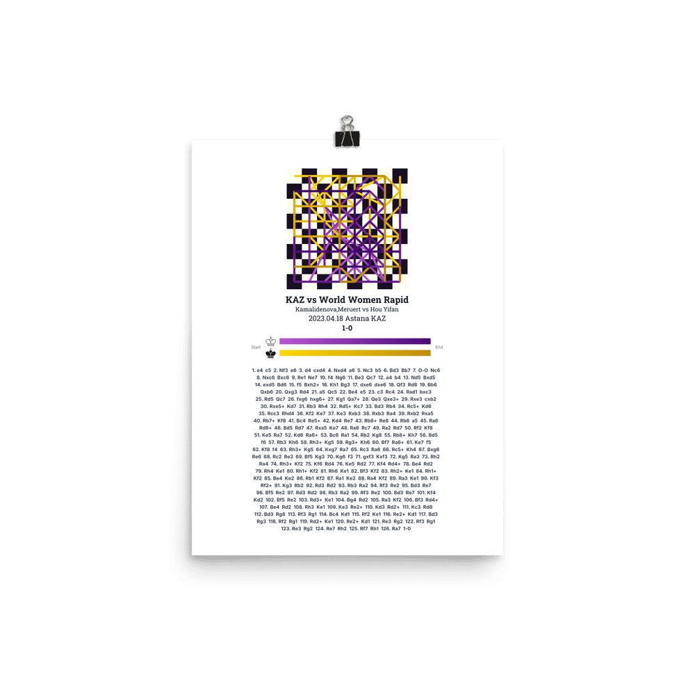 Museum-quality poster on thick, durable matte paper. A sharp, clean look for any chess visualisation.