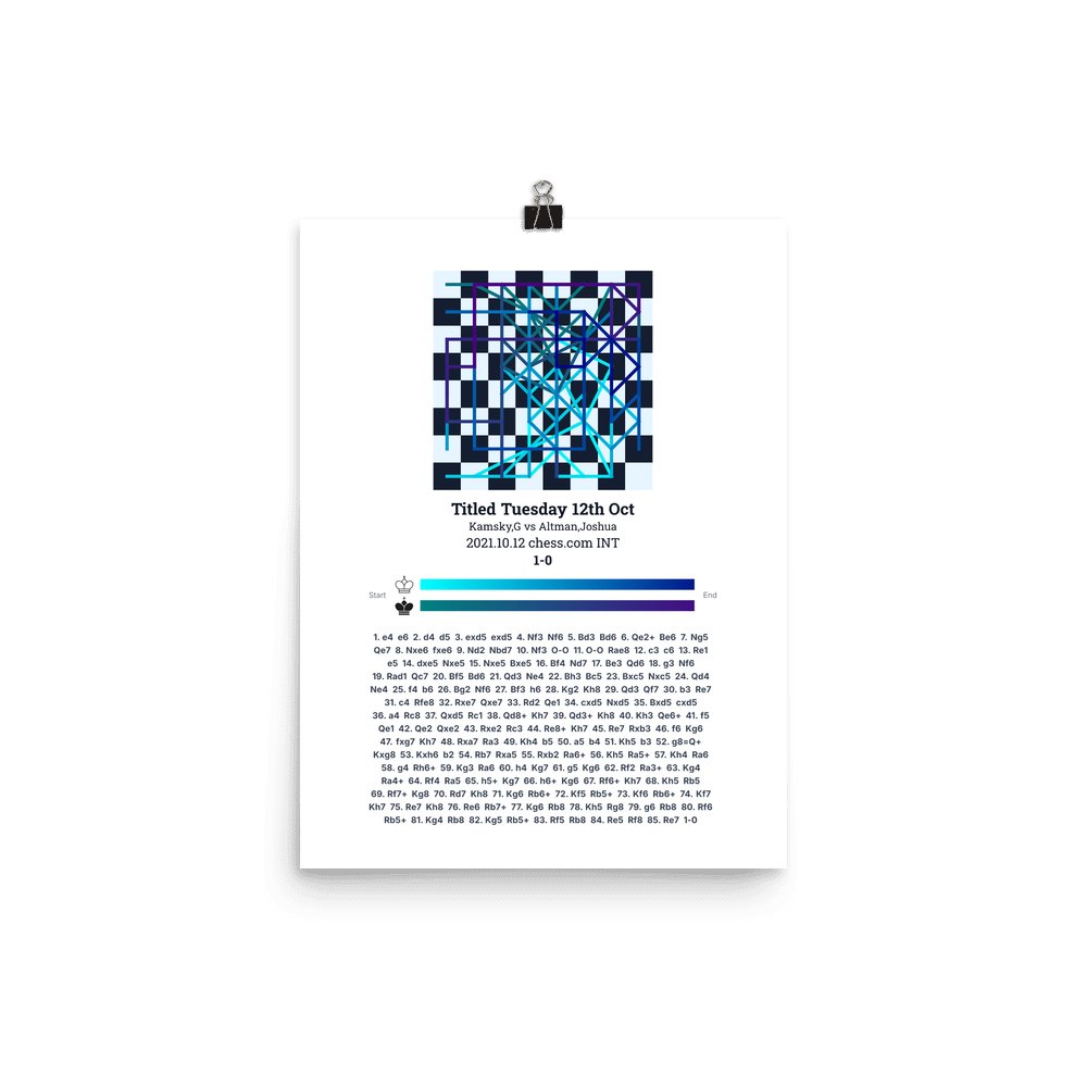 Museum-quality poster on thick, durable matte paper. A sharp, clean look for any chess visualisation.
