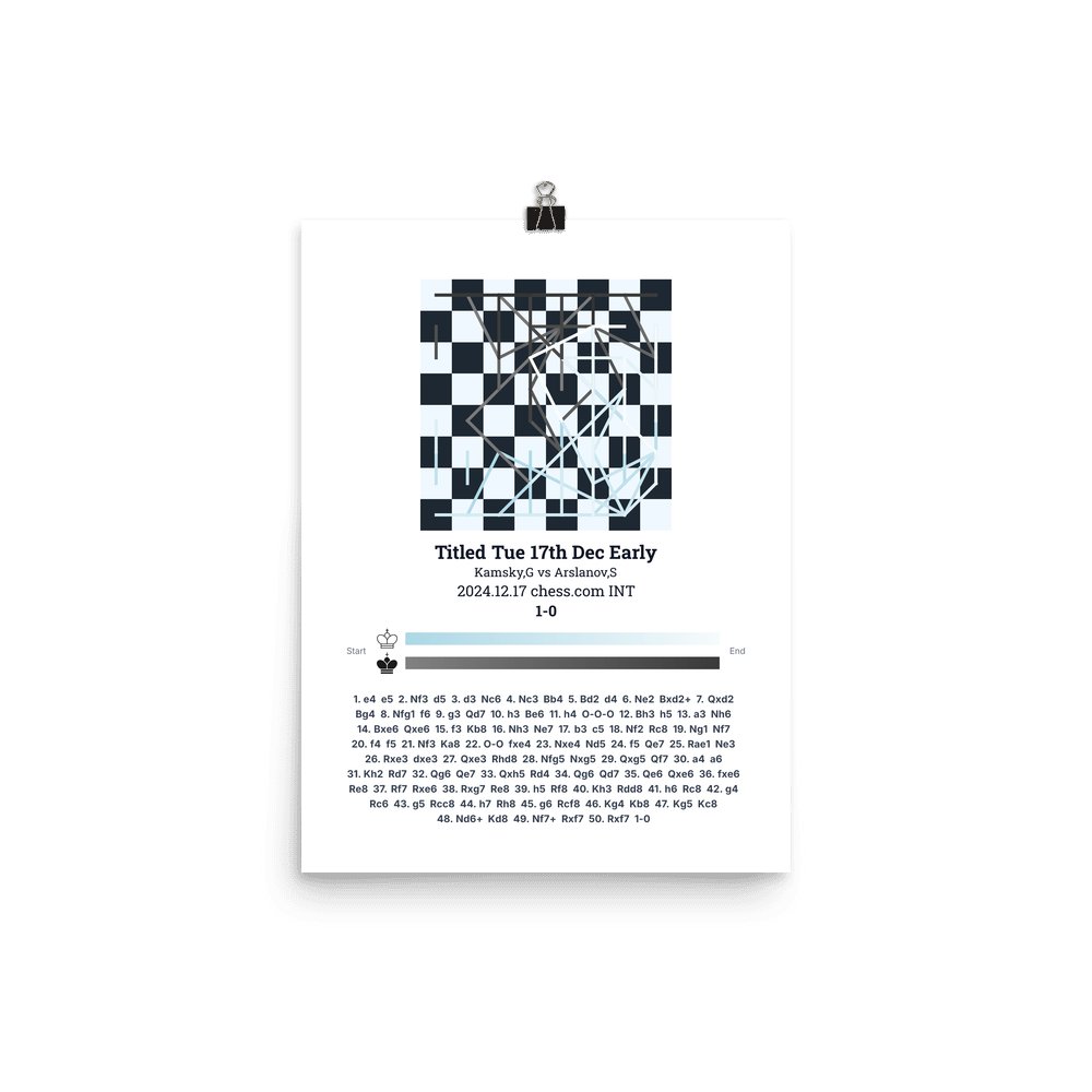 Museum-quality poster on thick, durable matte paper. A sharp, clean look for any chess visualisation.