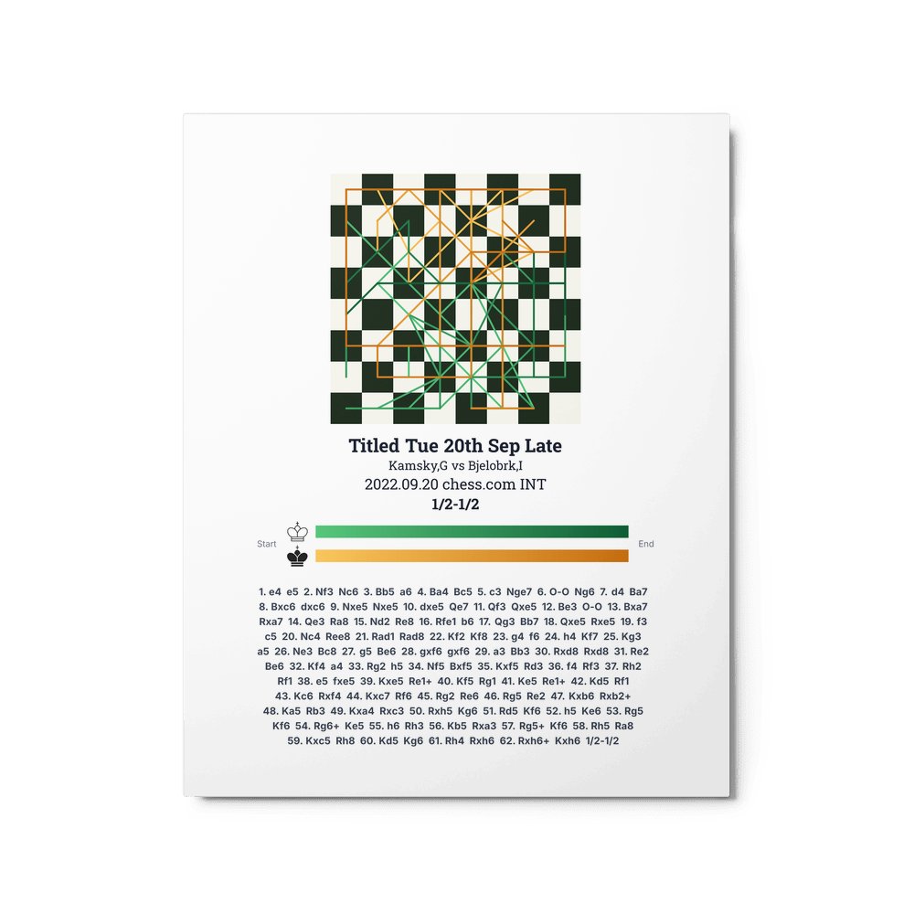 Museum-quality poster on thick, durable matte paper. A sharp, clean look for any chess visualisation.