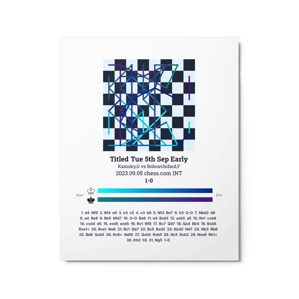 Museum-quality poster on thick, durable matte paper. A sharp, clean look for any chess visualisation.