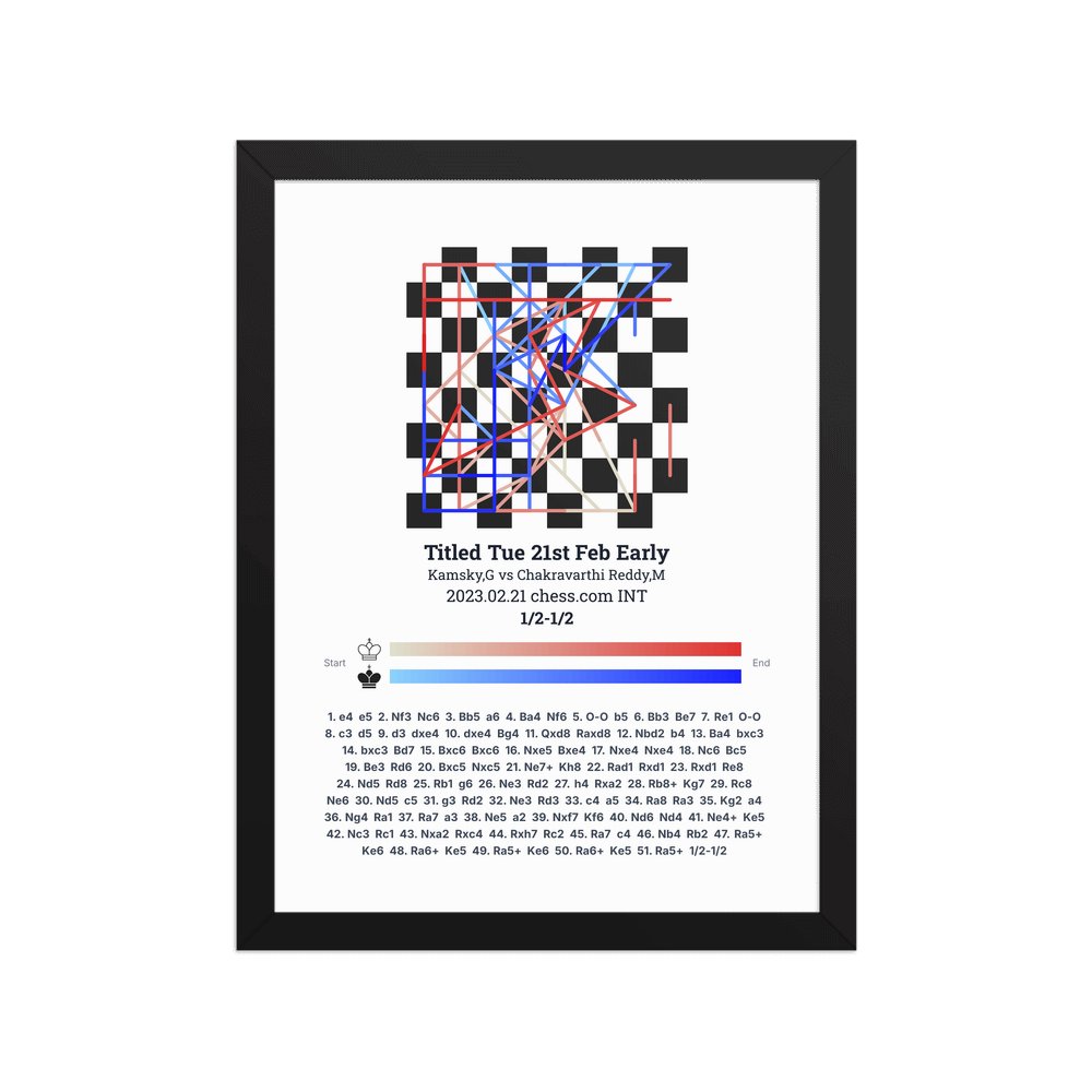 Museum-quality poster on thick, durable matte paper. A sharp, clean look for any chess visualisation.