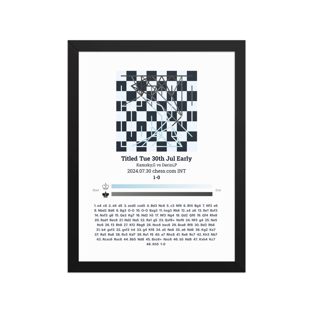 Museum-quality poster on thick, durable matte paper. A sharp, clean look for any chess visualisation.