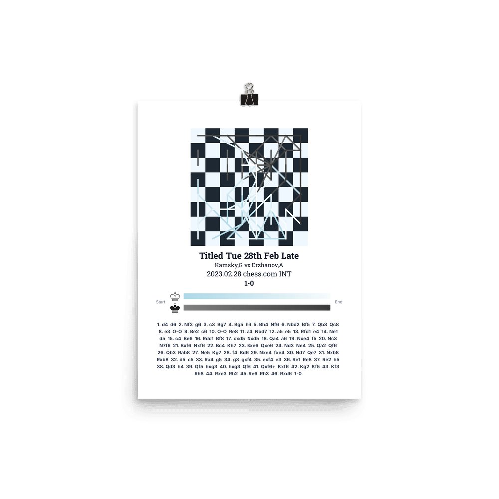 Museum-quality poster on thick, durable matte paper. A sharp, clean look for any chess visualisation.