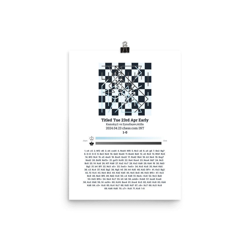 Museum-quality poster on thick, durable matte paper. A sharp, clean look for any chess visualisation.